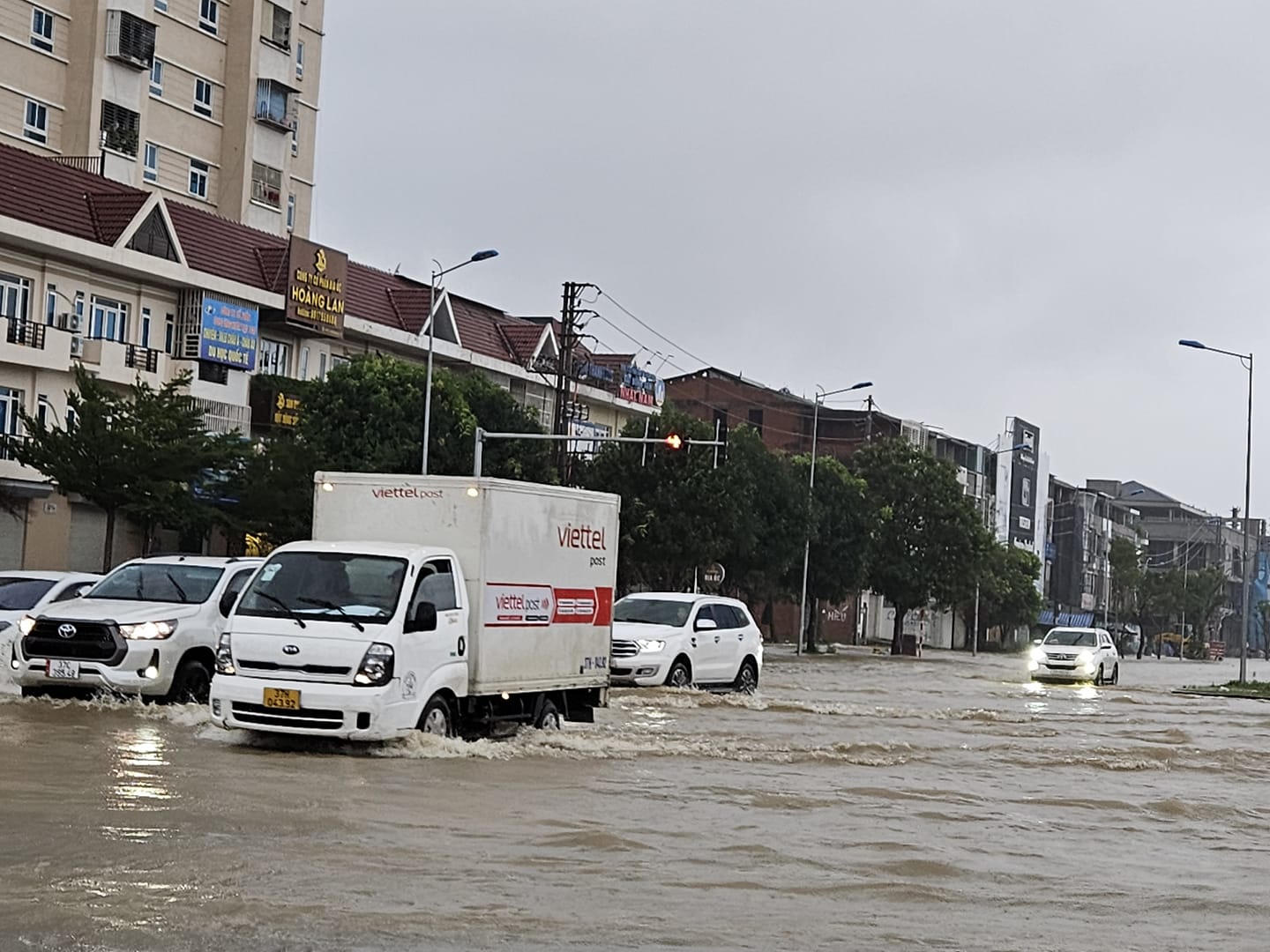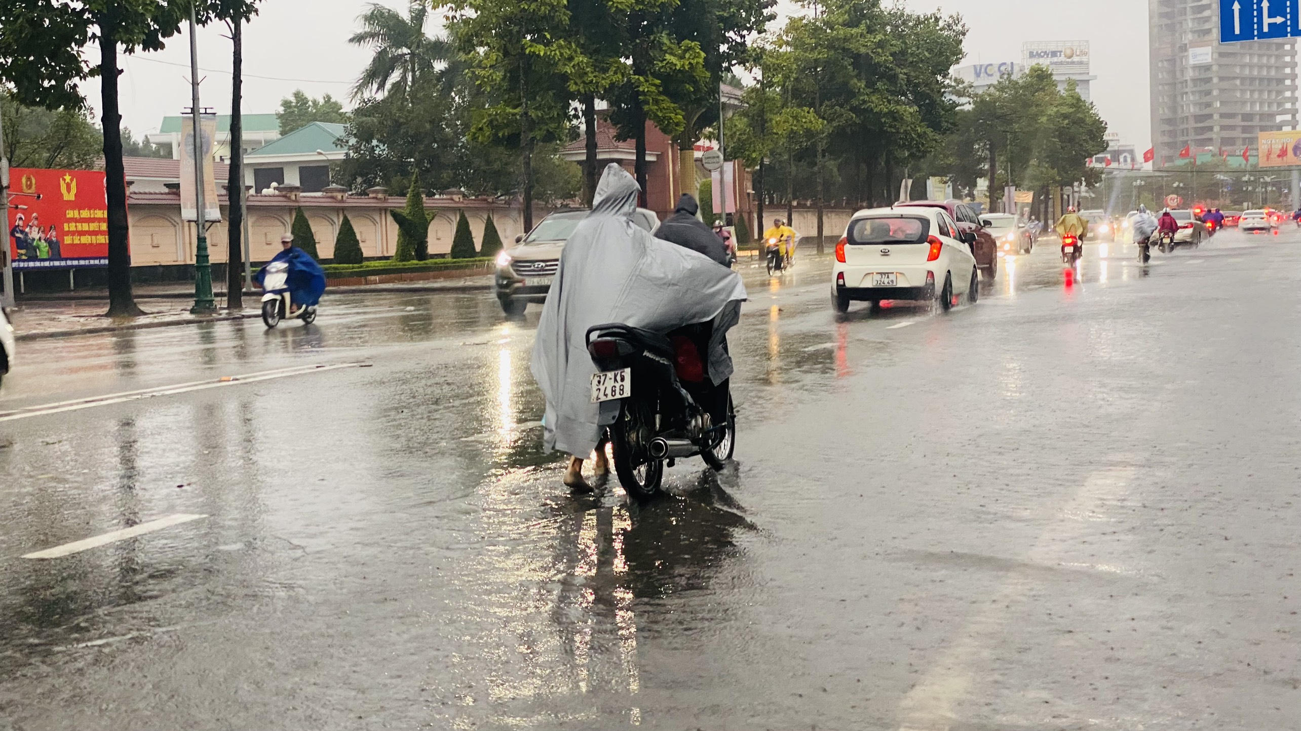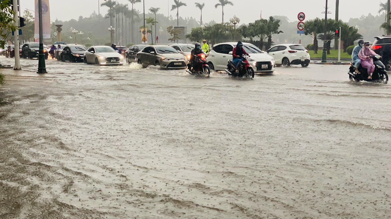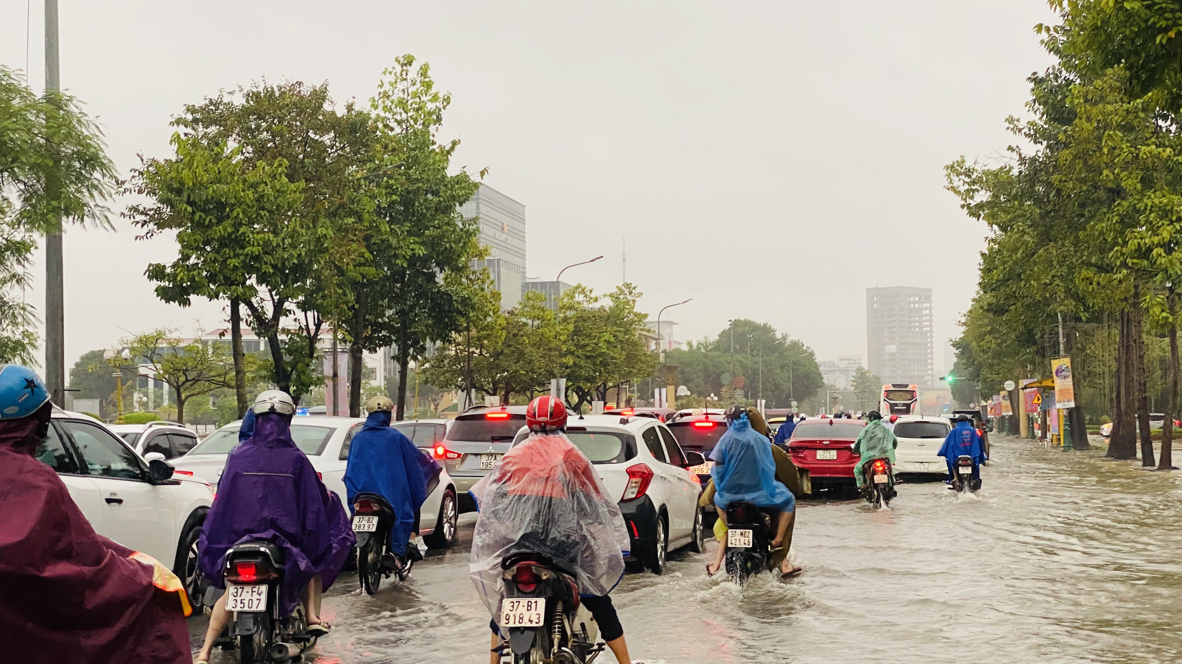 Sáng 13/11, nhiều đoạn đường tại TP Vinh ngập sâu như: Phong Định Cảng, vòng xuyến hải quan, Hồ Tùng Mậu, Trường Thi, Đại lộ Lê Nin...