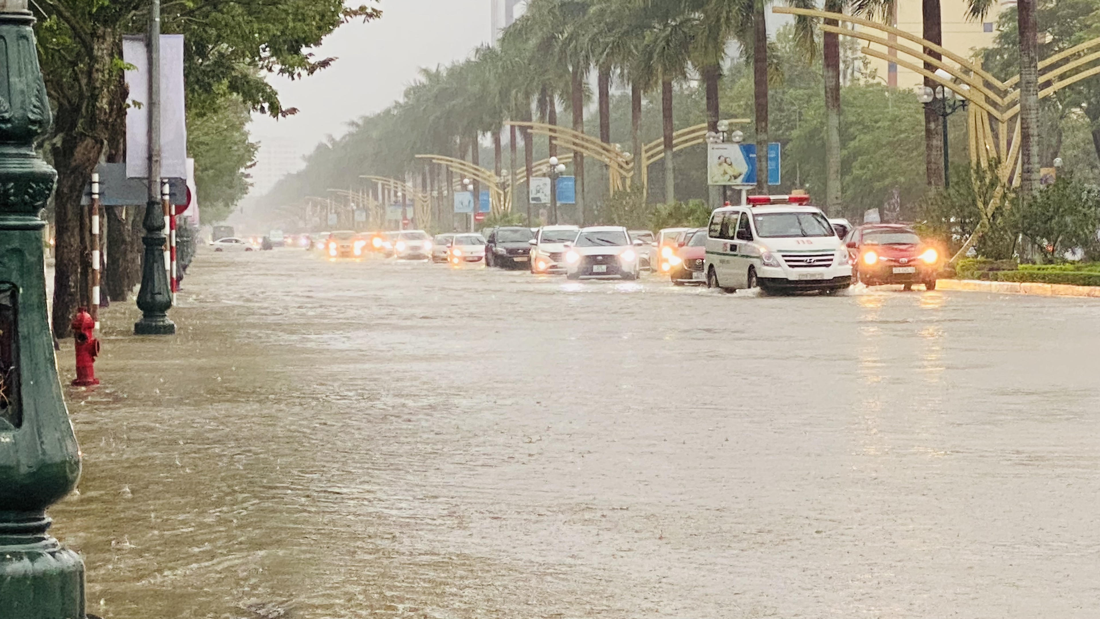 Đại lộ Lê Nin hầu như bị ngập cả tuyến. |