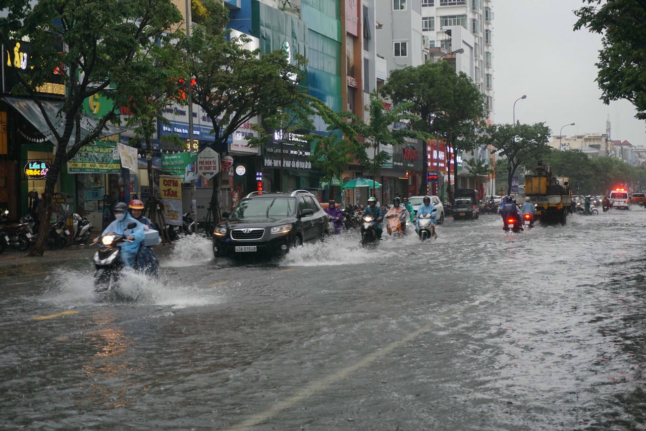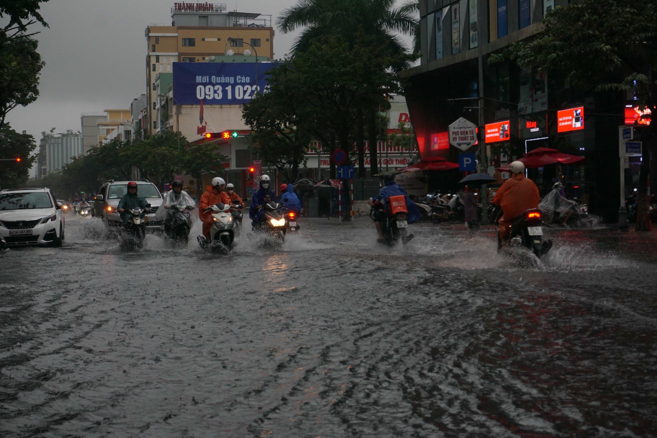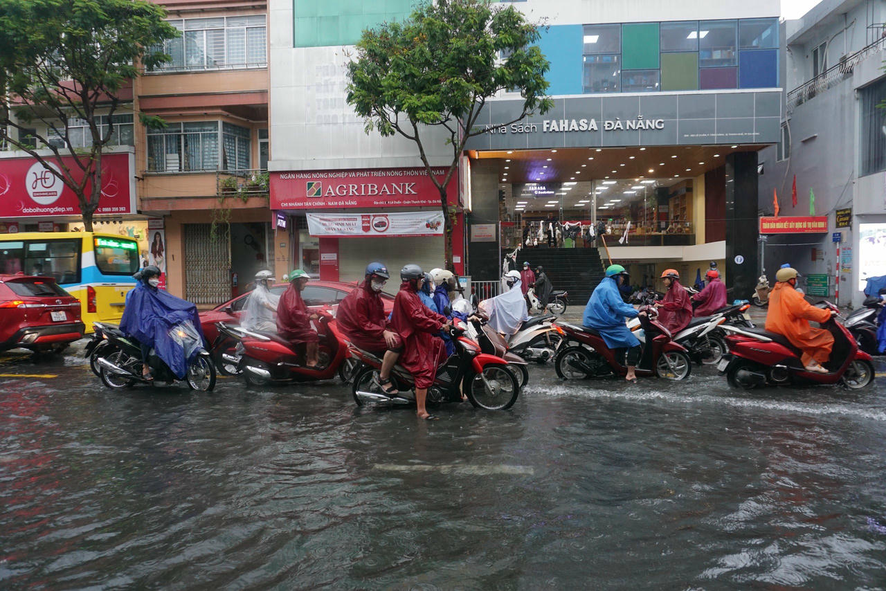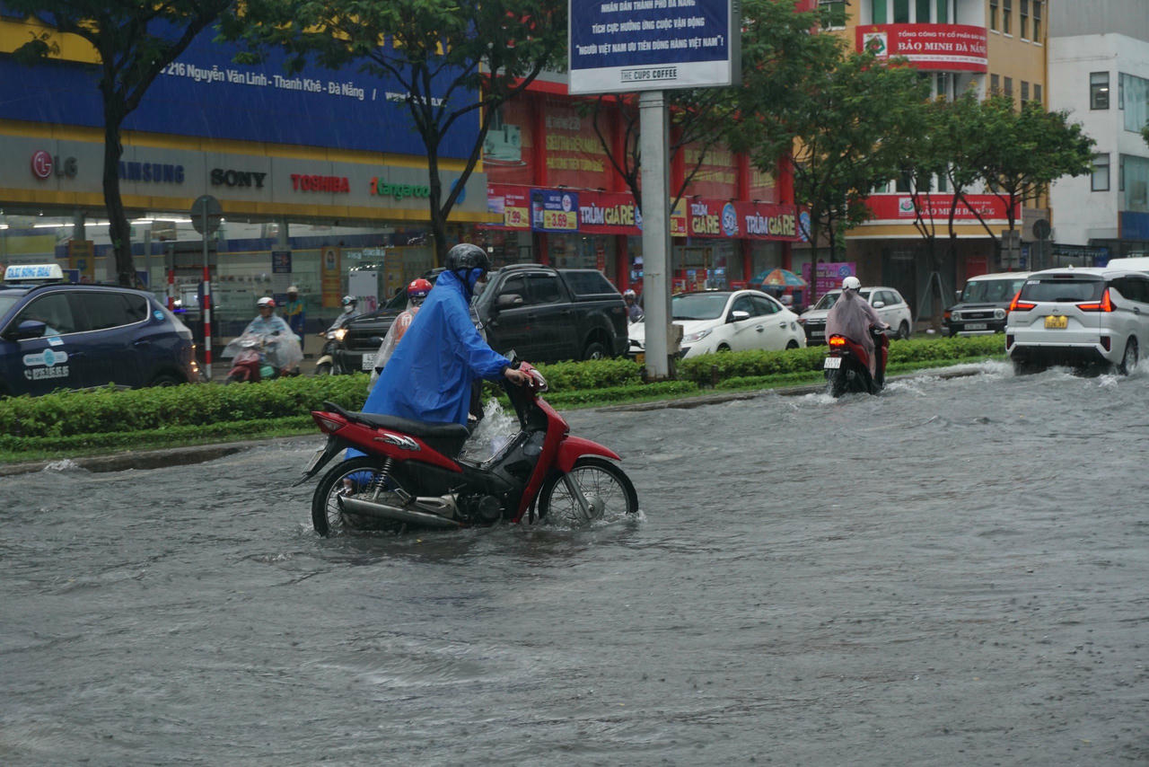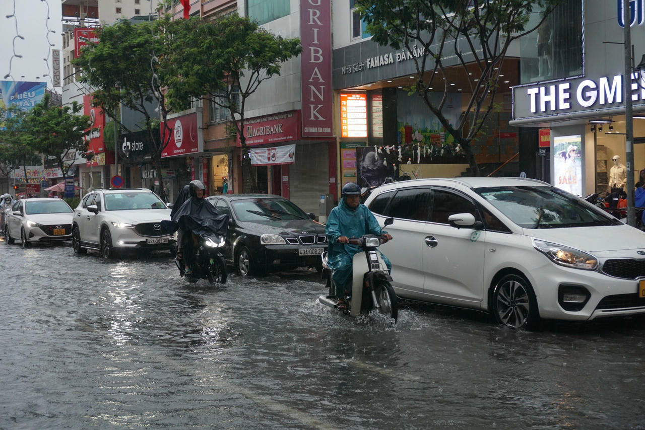 Mưa lớn kéo dài từ tối 12 đến ngày 13/10, khiến nhiều tuyến đường tại Đà Nẵng bị ngập nặng.