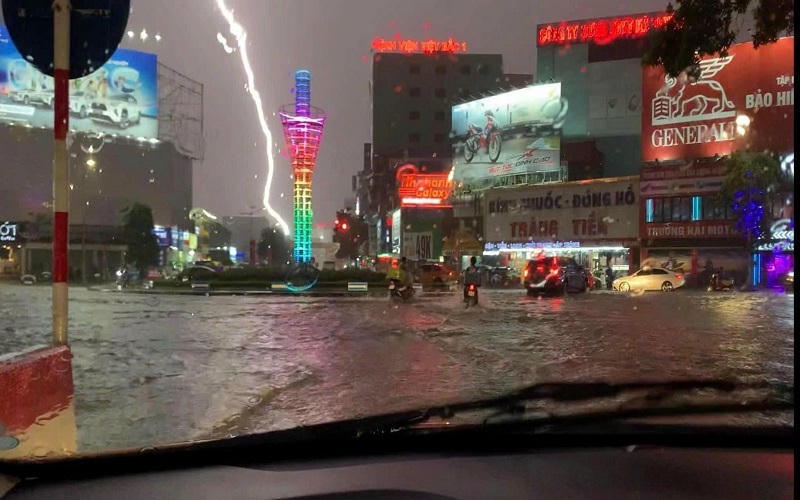Nhiều tuyến đường Thái Nguyên ngập sâu sau mưa lớn