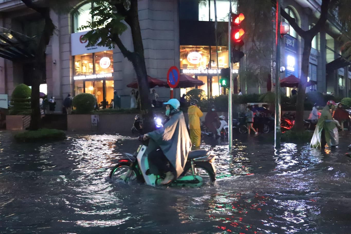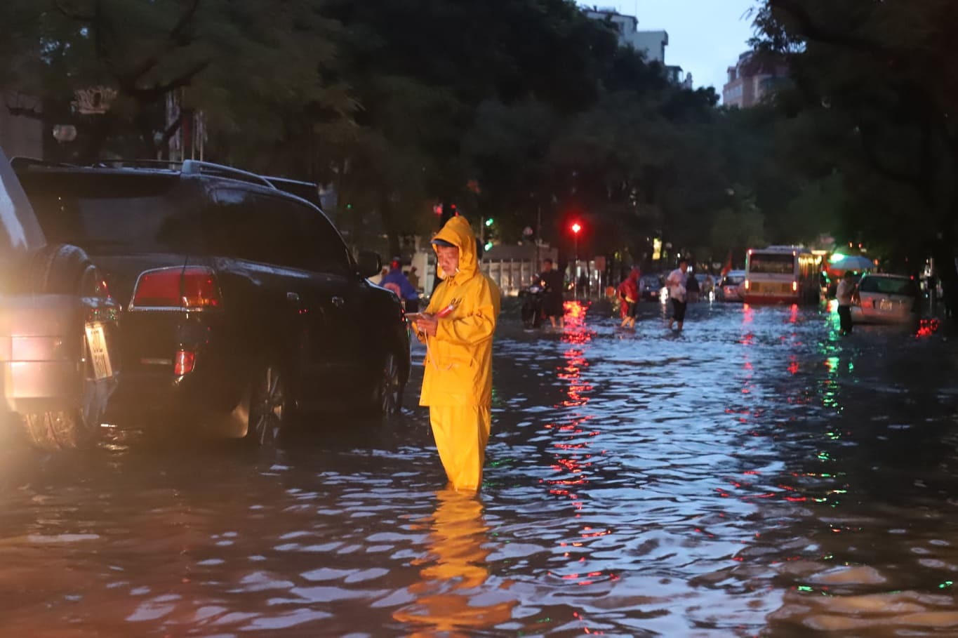 Nhiều tuyến phố trung tâm Hà Nội thành 'sông' do mưa lớn kéo dài