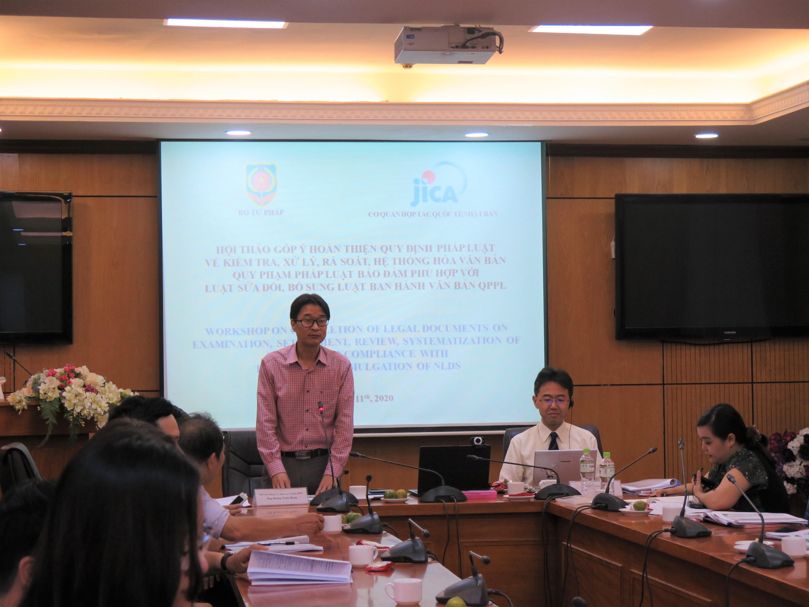 Phát biểu trực tuyến từ Nhật Bản, Cố vấn trưởng của Dự án JICA cho biết Hội thảo được tổ chức trong bối cảnh dịch bệnh COVID-19 đang bùng phát trên thế giới chứng tỏ Việt Nam là một quốc gia đã rất thành công trong việc đẩy lùi dịch bệnh. Tiếp lời, vị Cố vấn trưởng Dự án cho biết ở quốc gia nào trên thế giới cũng vậy, mỗi khi người ta muốn nâng cao chất lượng quản lý thì cần tổ chức Hội thảo lấy ý kiến. “Chắc chắn chúng ta sẽ thu được nhiều ý kiến khác nhau từ các đại biểu tham dự Hội thảo, trong đó có những ý kiến không mang tính chuyên môn nhưng có thể tìm ra vấn đề quyết định, mang tính cốt lõi”, Cố vấn trưởng của Dự án JICA nói.