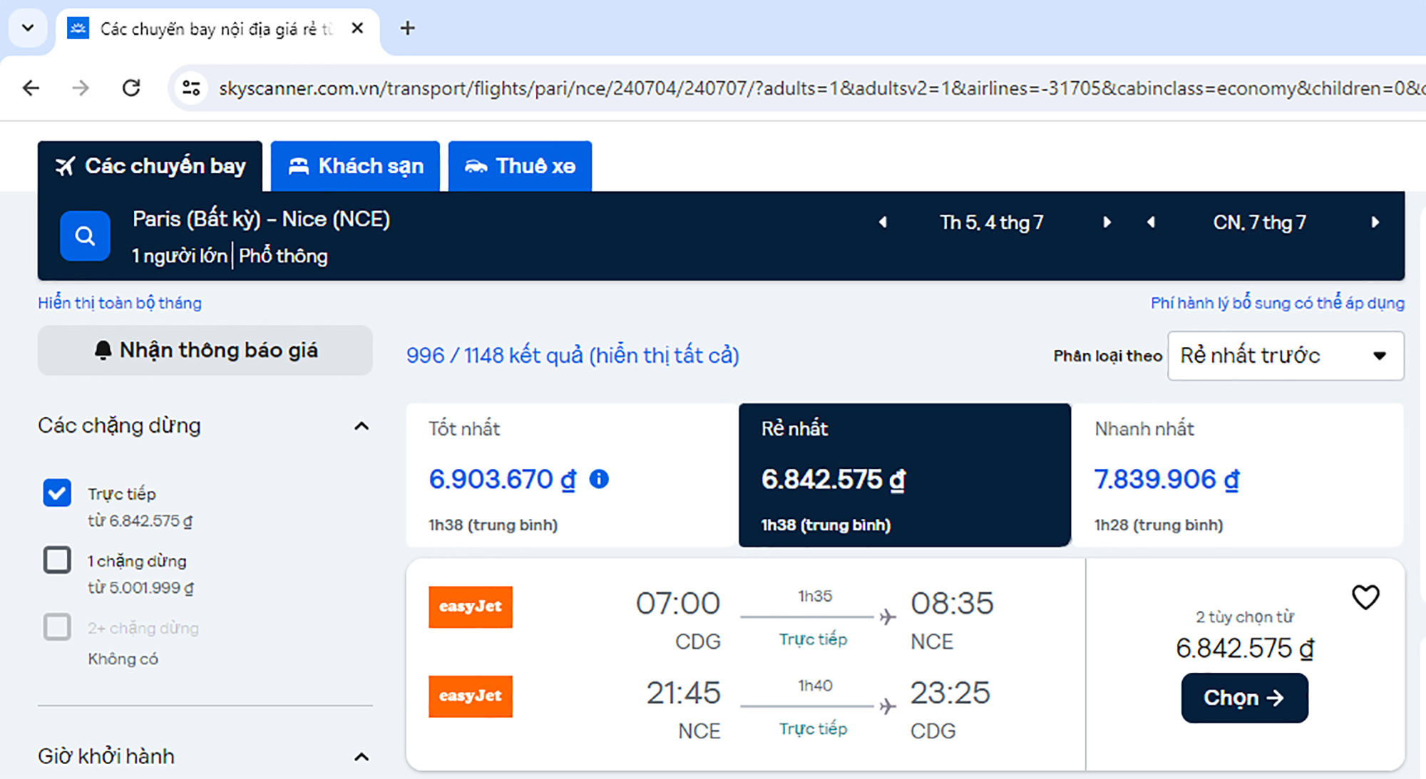 Chẳng hạn, lấy giá vé chặng nội địa Hà Nội – Đà Nẵng đi ngày 4/7, về ngày 7/7 ở trên, so sánh với chặng nội địa Paris – Nice của Pháp với tiêu chí cùng ngày bay, tương đương về khoảng cách, tương đồng về điểm đến (Đà Nẵng và Nice đều là thành phố biển nổi tiếng), sẽ cho ra kết quả chặng Hà Nội – Đà Nẵng có mức vé từ 3,4 - 3,6 triệu đồng, rẻ hơn rất nhiều so với mức vé quy đổi từ 6,8 – 7,8 triệu đồng của chặng Paris – Nice.