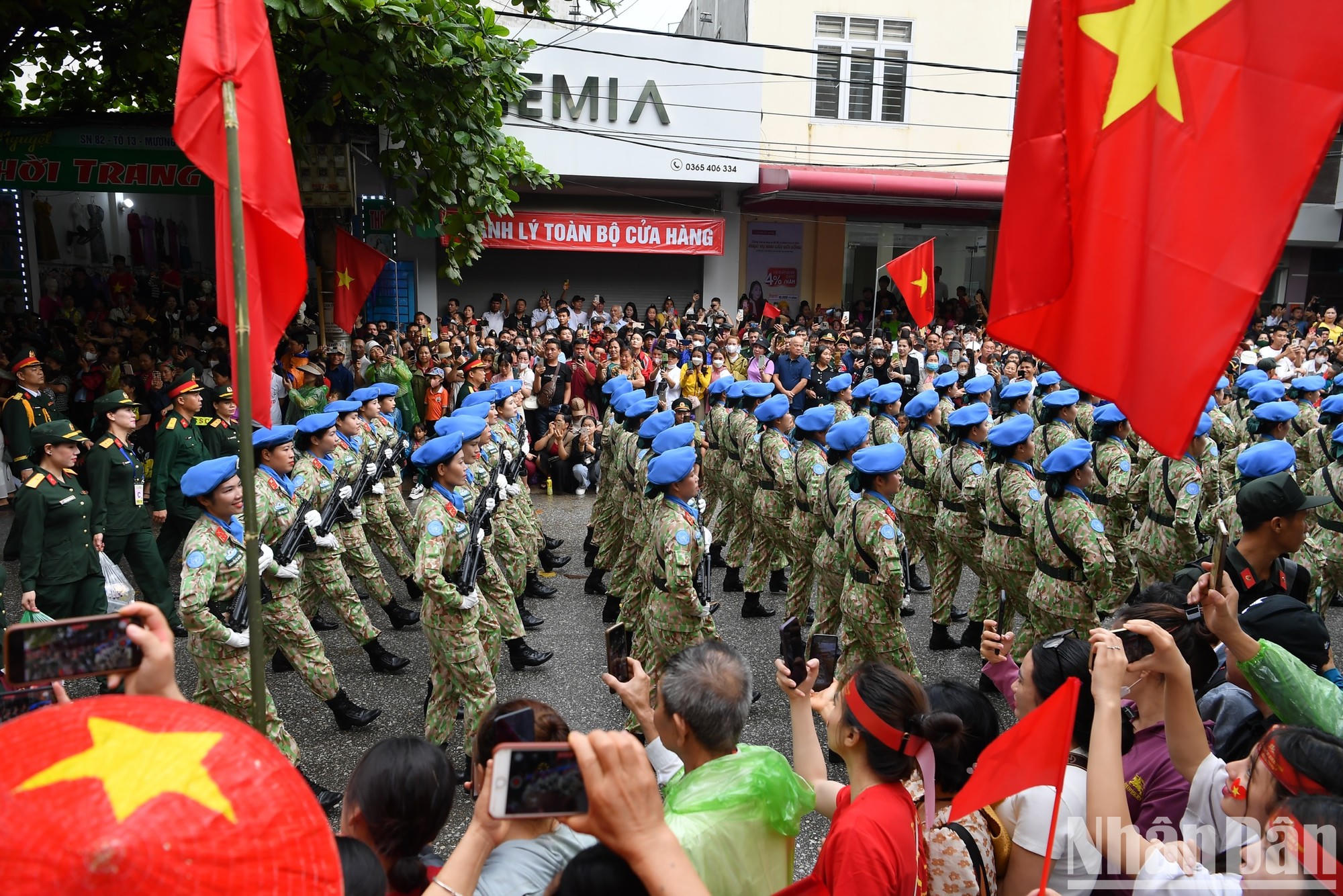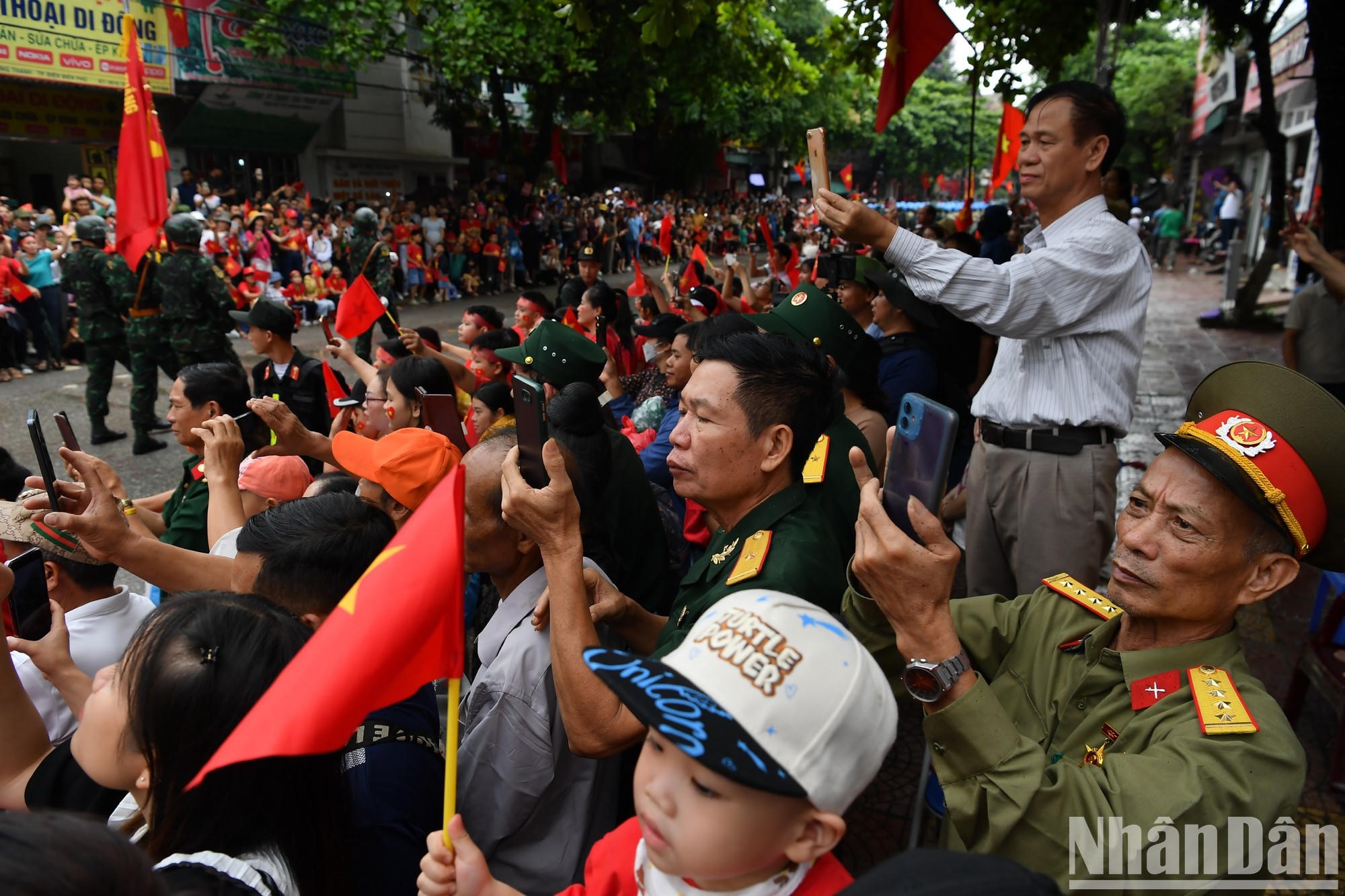 Lúc này, trời cũng đã tạnh mưa. Người dân và du khách hào hứng khi các đoàn diễu hành xuất hiện, cố gắng ghi lại những hình ảnh bằng điện thoại. (Ảnh: Nhân Dân)