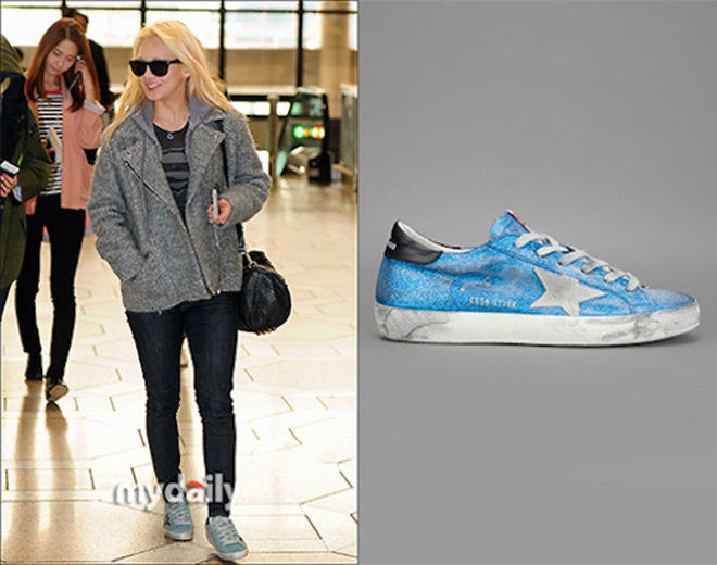 Ca sĩ Jessica (Hàn Quốc) khoe phong cách thời trang sân bay năng động với đôi giày bẩn của Golden Goose.