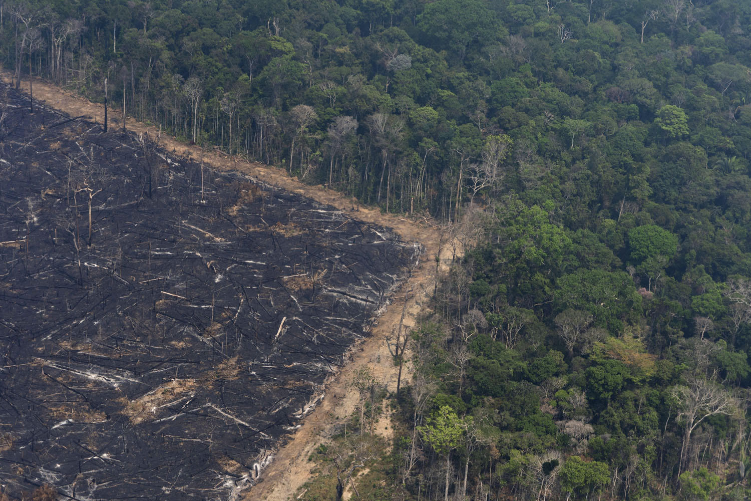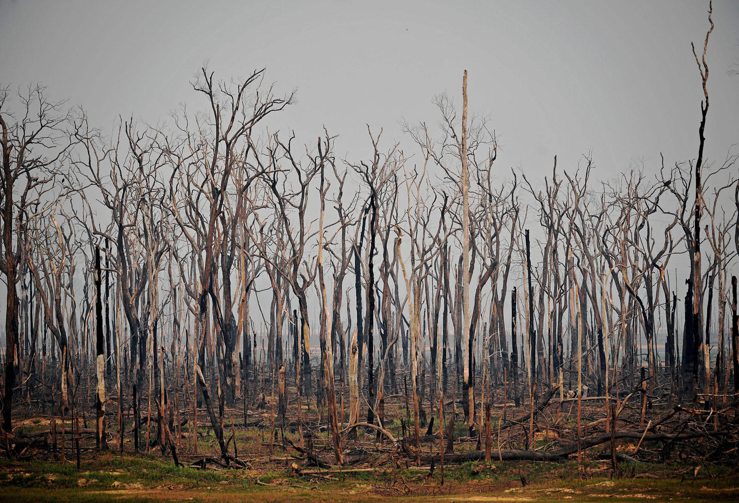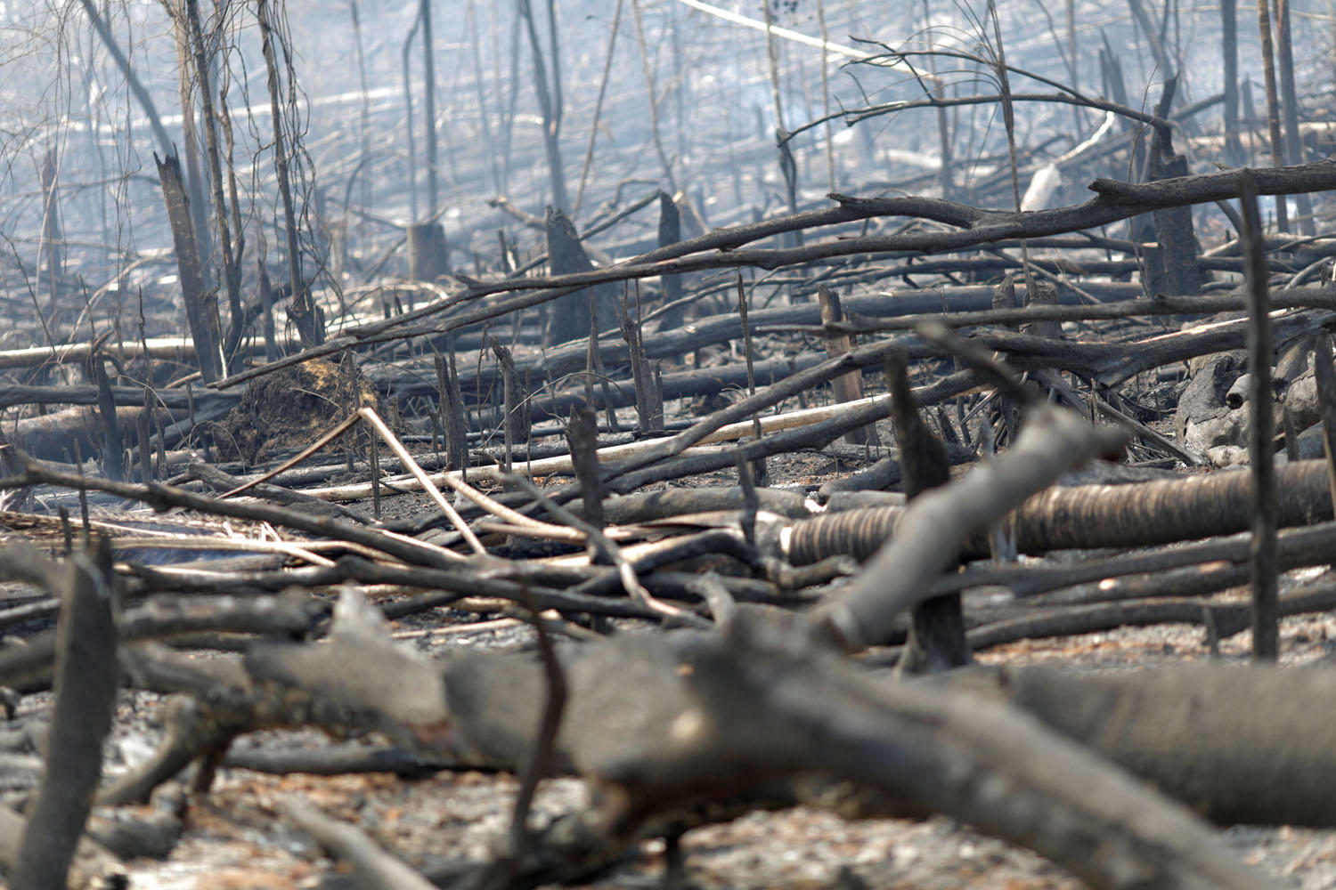 Những thân cây bị đốt cháy thành than trên một dải rừng rậm Amazon