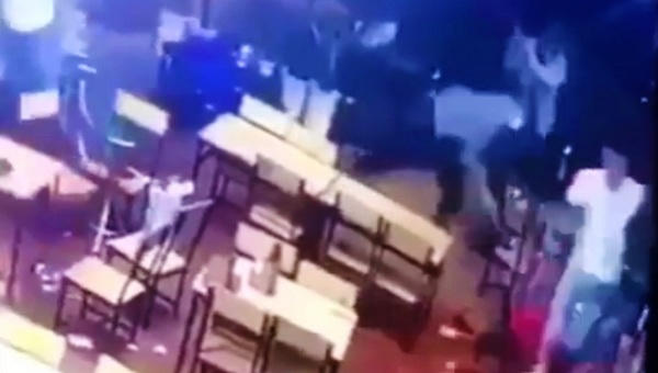 Theo camera ghi lại, nhóm đối tượng này bất ngờ xông vào quán và chém nhiều nhát vào một thanh niên đang ngồi nhậu. Vì bất ngờ thanh niên này không thể chống đỡ và sau đó bị chém ngã gục xuống nền. Gây án xong, những đối tượng này liền rời khỏi hiện trường.