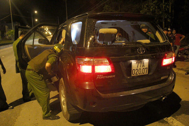 Tại hiện trường, tổ khám nghiệm đã thu giữ 1 quả lựu đạn chưa nổ và nhiều vỏ đạn. Trong khi đó, Tổ công tác 113 đuổi theo ô tô BKS 77A - 020.07 vừa rời khỏi hiện trường và nhanh chóng khống chế chiếc xe này cùng 4 đối tượng trên xe.