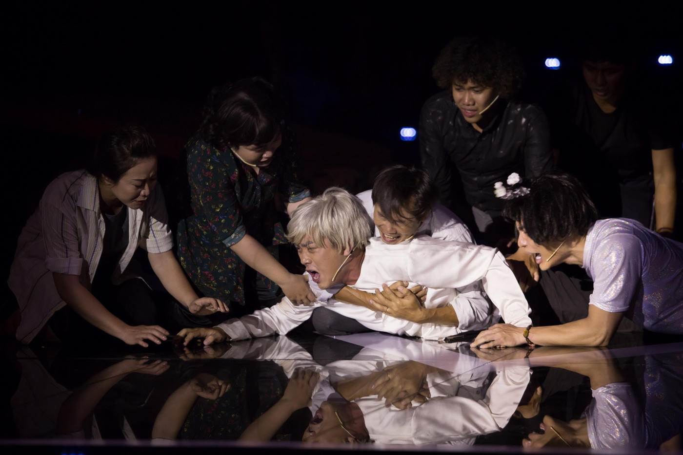 | Phân cảnh thầy giáo Đằng thắp đèn cầy khi bị chủ nhà tắt điện cho học trò tiếp tục diễn xuất của nhóm Khủng long tí hon khiến khán giả bùi ngùi |