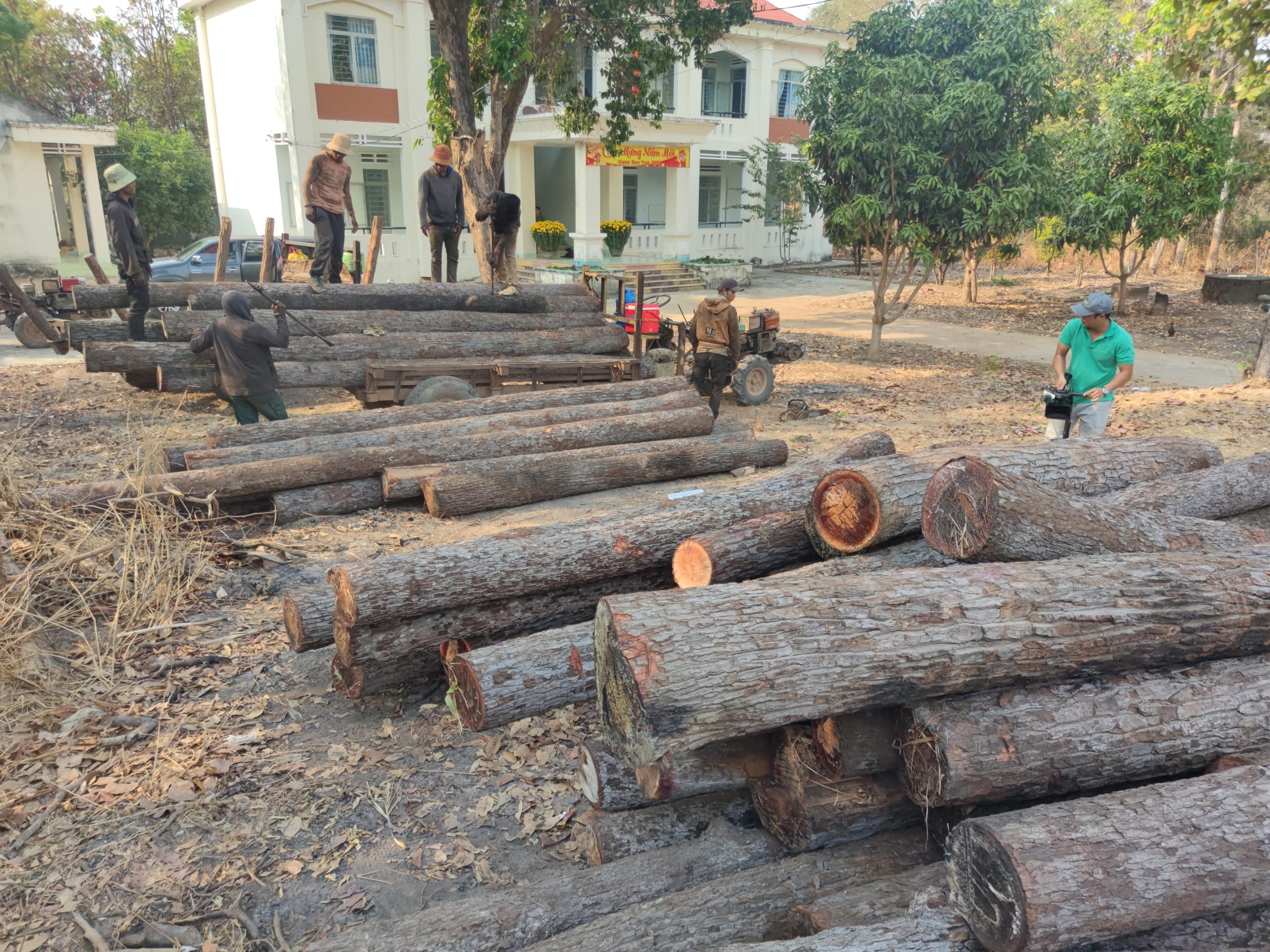 Tại đây, lực lượng phát hiện 181 lóng gỗ tròn, tổng khối lượng gỗ hơn 25,7m3, thuộc chủng loại dầu. Tổ công tác đã yêu cầu các đối tượng dừng hành vi vi phạm và đưa tang vật, phương tiện về UBND xã la Mơ để làm việc.