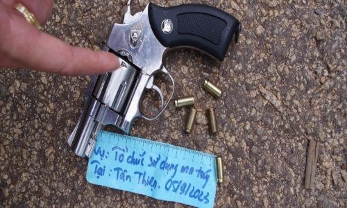 Tiến hành khám xét lực lượng Công an còn thu giữ 2 khẩu súng và tang vật khác. Trong đó, 1 khẩu súng dạng Rulo màu đen và 12 viên đạn, đầu đạn bằng chì. Đối tượng Nguyễn Thanh Quan khai nhận là của Quan mua trên mạng của một người không biết tên, với mục đích để phòng thân; 1 khẩu súng dạng Rulo thân súng màu bạc, báng súng màu đen và 05 viên đạn, đầu đạn bằng cao su, đối Việt khai nhận là của Việt mua trên mạng mạng của một người không biết tên, với mục đích để phòng thân và nhiều dụng cụ sử dụng ma túy.