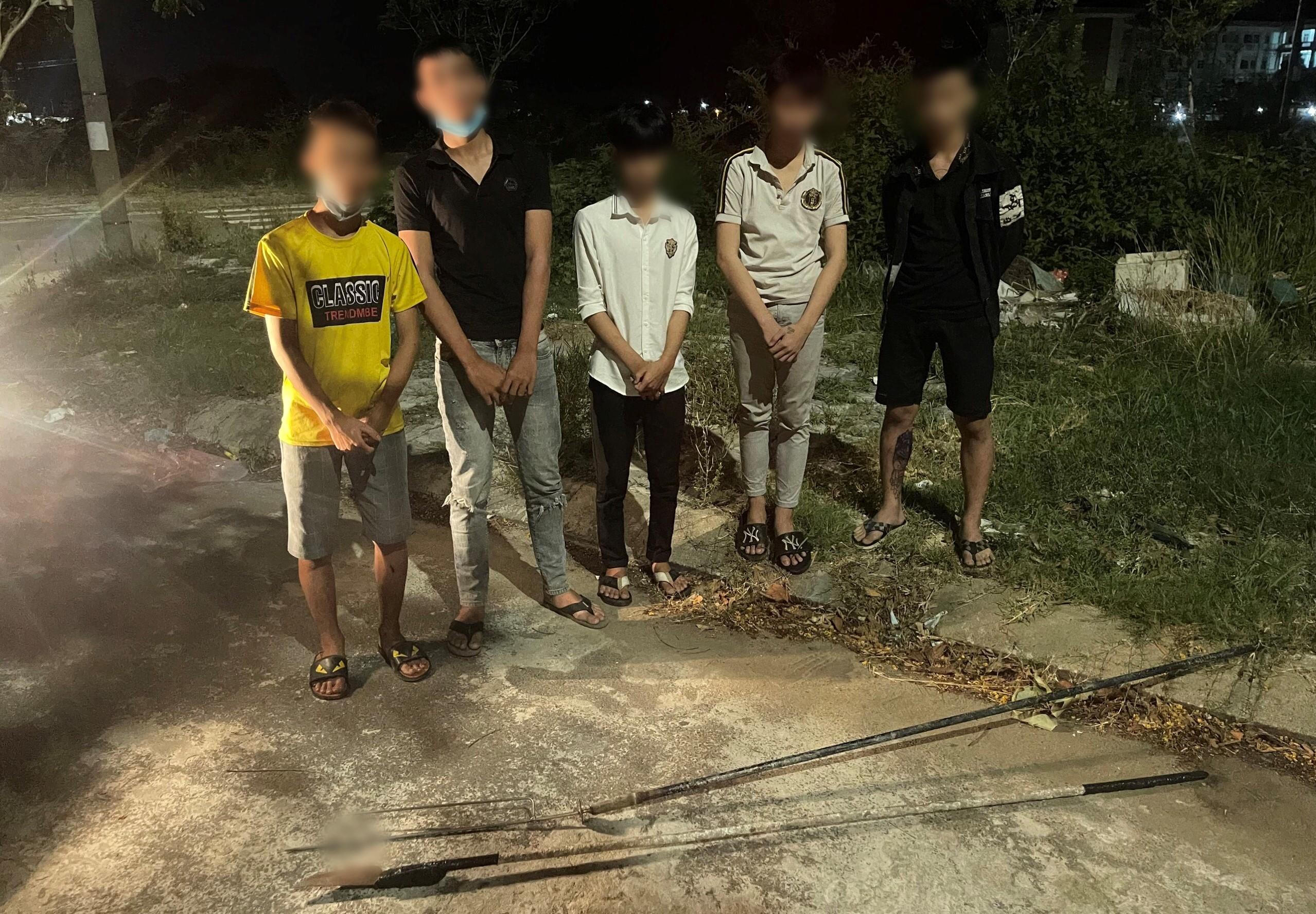 Khi thấy cảnh sát, nhóm côn đồ nhí này bỏ chạy tán loạn. Qua truy đuổi, công an đã vây bắt được Trần Lê Anh Trung (19 tuổi, ngụ thôn An Ngãi Tây, xã Hòa Sơn, huyện Hòa Vang) và Trần Thành Nguyên (17 tuổi, ngụ quận Liên Chiểu). Đồng thời, thu giữ tang vật là 1 xe máy và dao phóng lợn dài khoảng 1,3m.