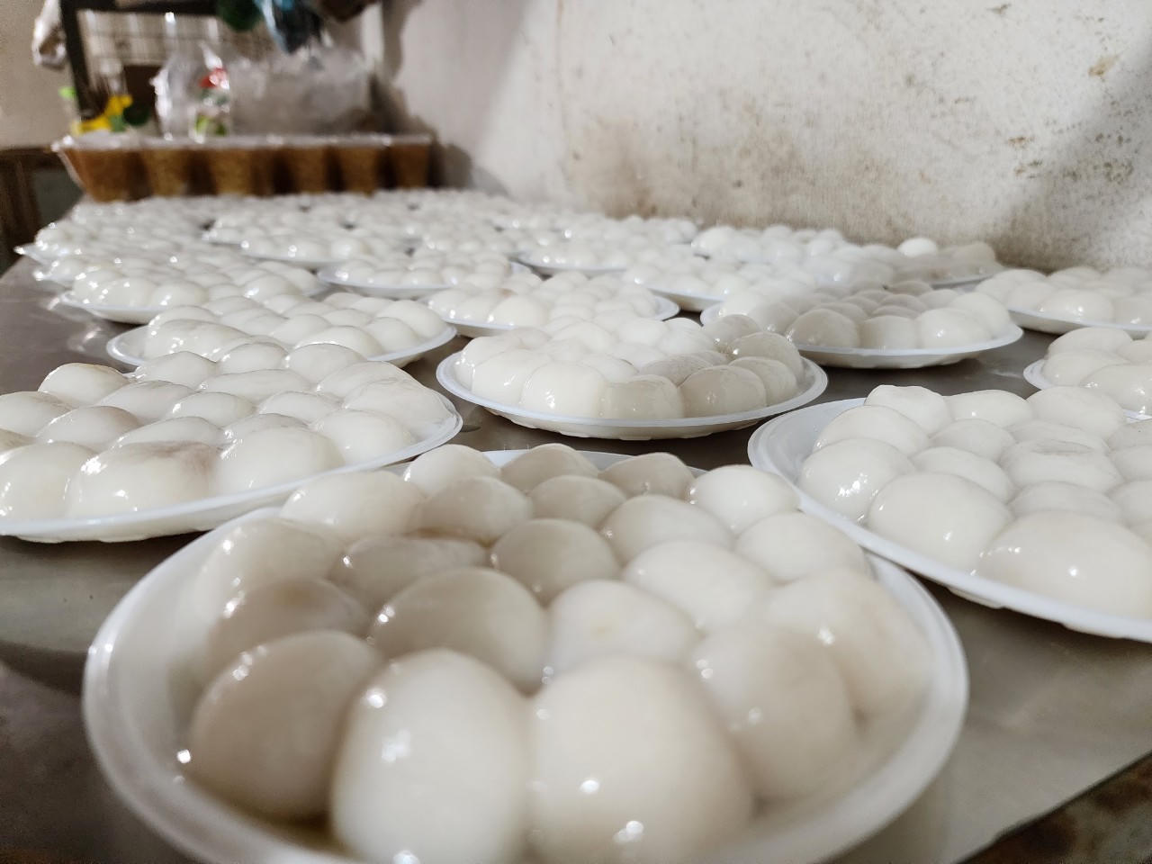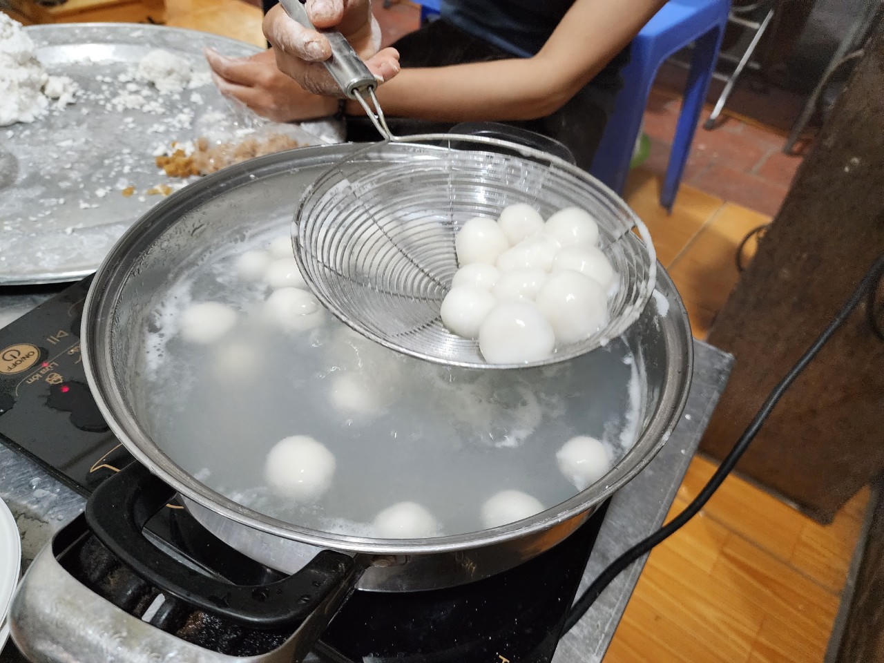 Những chiếc bánh trôi truyền thống trắng muốt được gói nặn cẩn thận. |