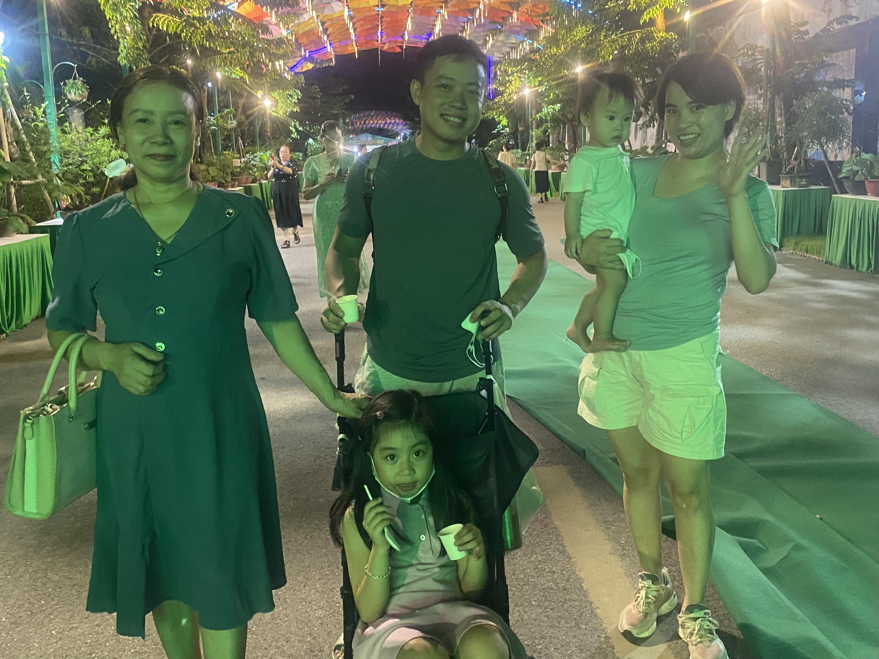 Cô Hà Thị Bắc (ngoài cùng bên trái) cùng gia đình rất vui khi được tham dự lễ hội. (nguồn: PV) |