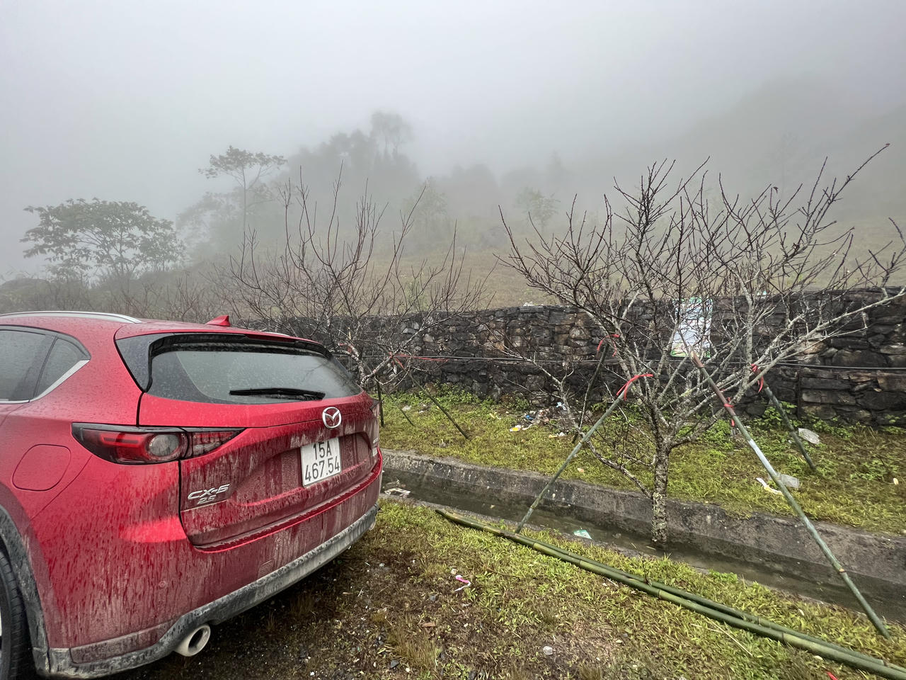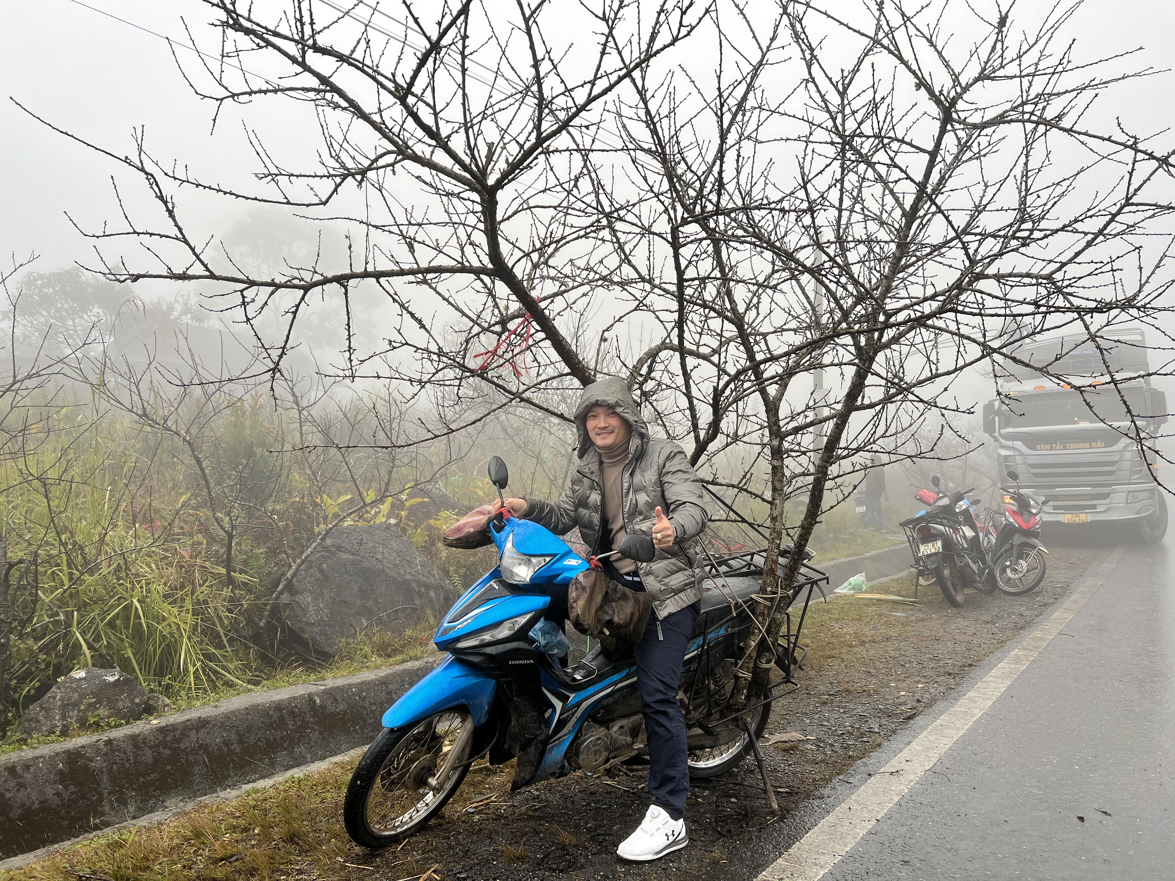 Nhiều du khách thích thú khi được check in cùng xe chở đào của bà con người vùng cao