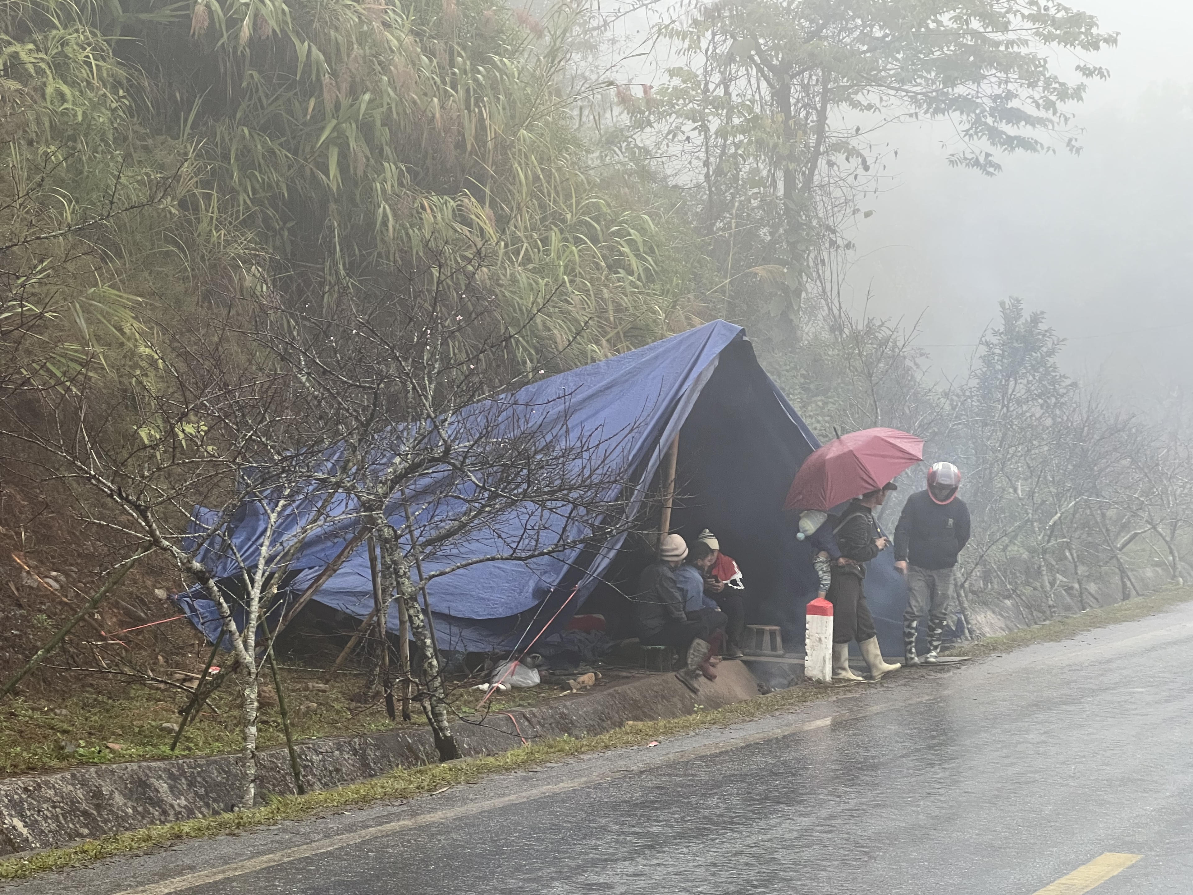 Dù thời tiết mấy ngày này rất lạnh người dân phải căng bạt, đốt lửa sưởi ấm để bán đào. Niềm vui của người bán đào ở Tây Bắc khi năm nay đào được giá, có thêm nguồn thu nhập đáng kể để mua sắm Tết.