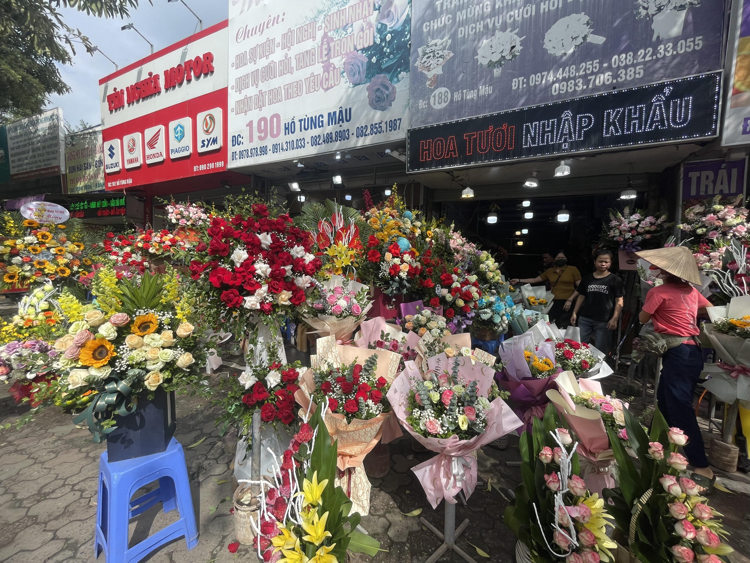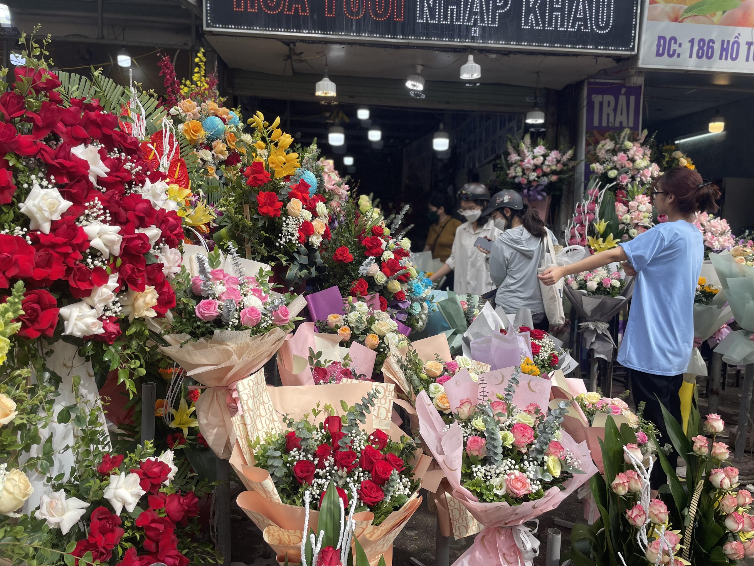 "Do hoa nhập vào giá đã cao nên tôi bán ra giá cũng cao hơn ngày thường từ 10% - 20%. Hoa theo bó dao động khoảng từ 200.000 - 300.000 đồng/bó, hoa theo lẵng thì từ 400.000 - 600.000 đồng/lẵng", chị T cho hay.