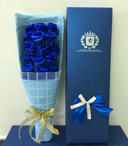 Ngoài hoa hồng dát vàng hoa hồng sáp cũng được khách hàng chú ý và đặt mua. Chị Huệ cho biết thêm, hoa hồng sáp có mùi thơm thoang thoảng, được làm bằng chất liệu sáp nên để được lâu, giá cả dao động từ 350.000 - 600.000 đồng tùy số bông.