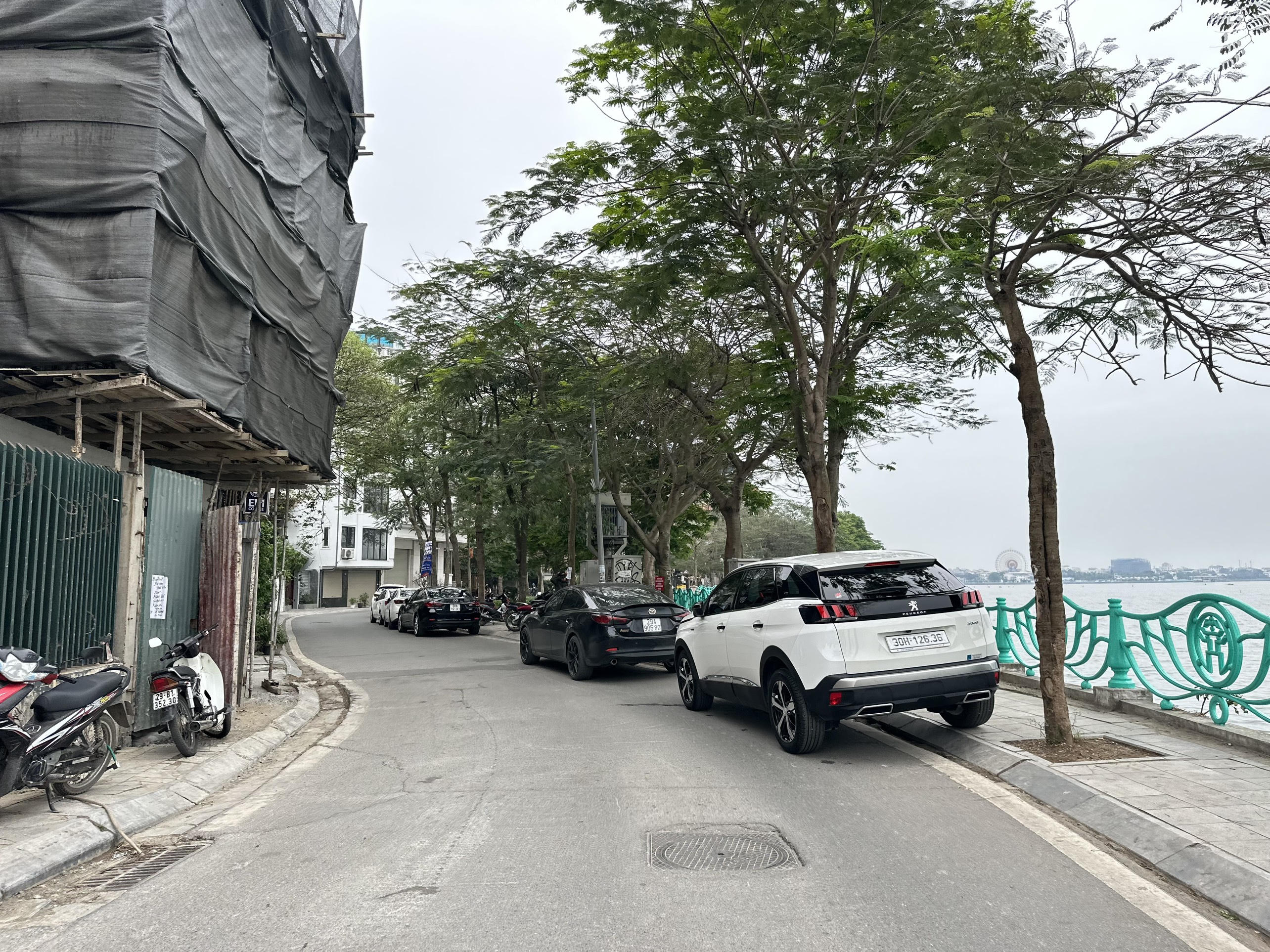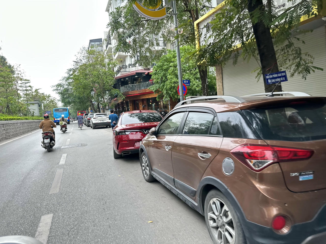 | Tại đường Vệ Hồ, ôtô để ngay dưới lòng đường. |