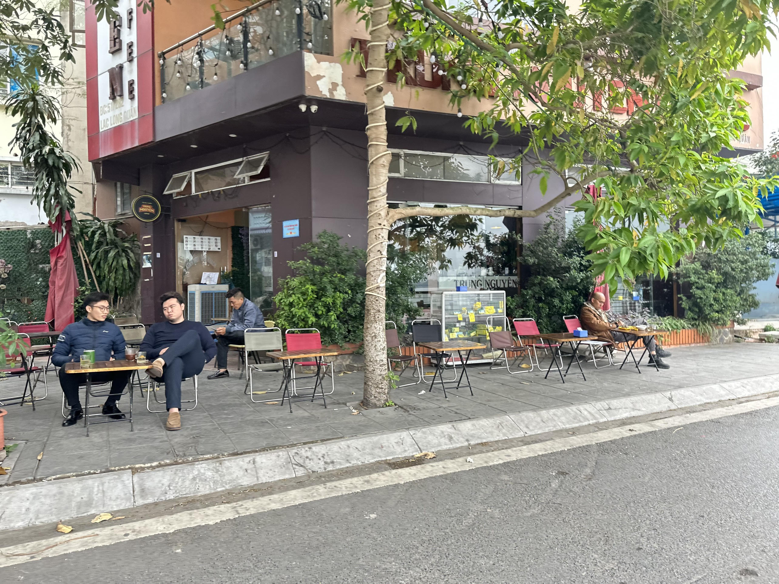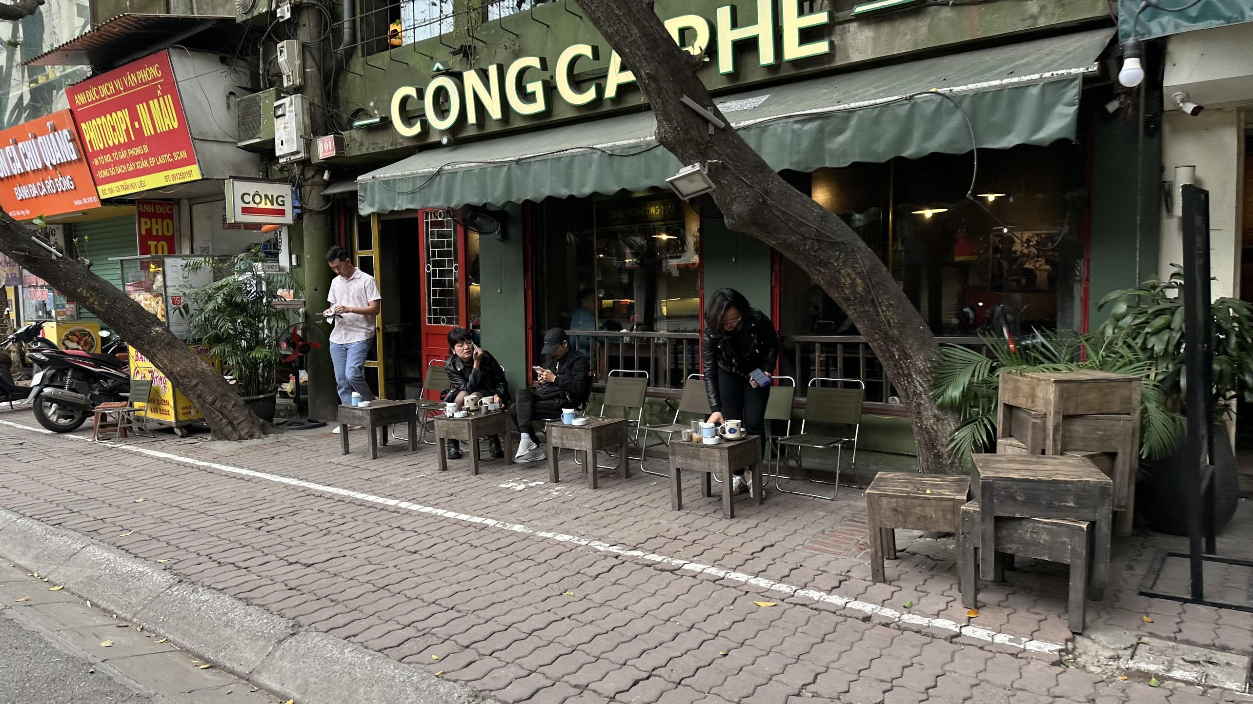 Một quán cà phê khác trên phố Trích Sài ngang nhiên dùng vỉa hè làm nơi kinh doanh. |