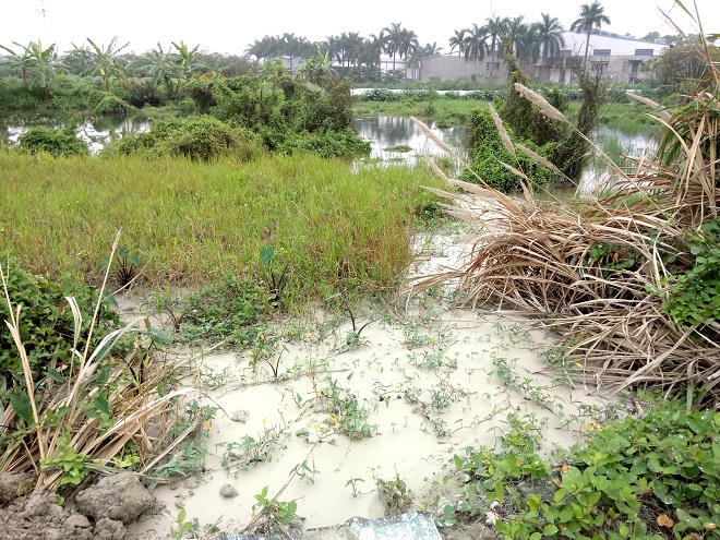 Con kênh dẫn nước ở thôn Trường An, cạnh CCN Trường An (xã An Khánh, Hoài Đức) cũng là một trong những điểm đen ô nhiễm trong khu vực.