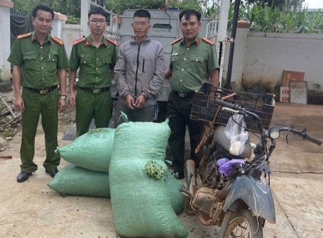 Công an xã Thuận Hà bắt giữ đối tượng Ngô Văn Bảng cùng tang vật. |