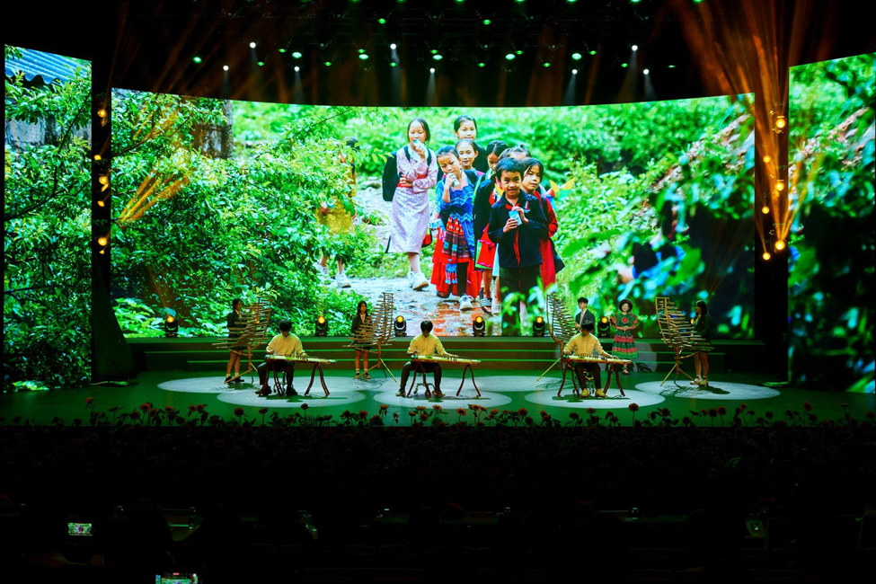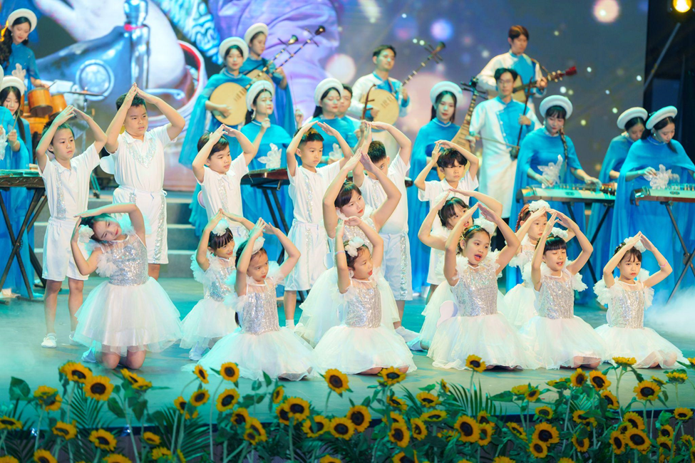 Tiết mục Mashup: Gà gáy sáng & Mặt trời của tôi. Biểu diễn: Trang Bùi, Nguyễn Trường Linh, Học sinh TH School và Dàn nhạc dân tộc Sức Sống Mới