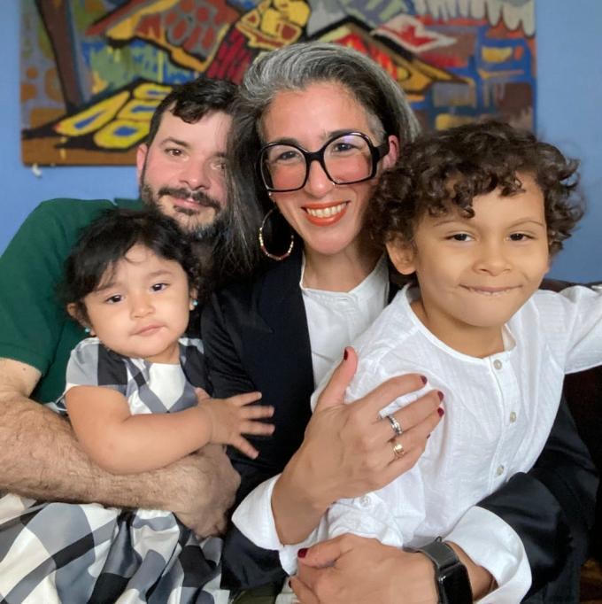 Nhà biên kịch Vanessa Garcia chụp ảnh cùng chồng và hai con, đã bạc trắng đầu vì những áp lực khi ở nhà trông con. Ảnh: Vanessa Garcia