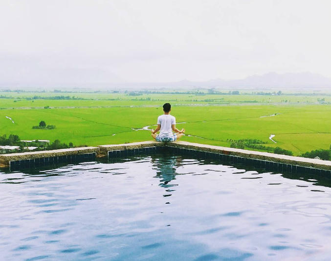 Đây là hồ bơi view đồng lúa đầu tiên ở Việt Nam, tọa lạc tại trung tâm thị trấn Châu Đốc, bên bờ sông Bassac. Năm ngoái, bể bơi này từng gây sốt ở An Giang nói riêng và miền Tây nói chung. Rất nhiều bạn trẻ đã thi nhau tới đây check in trốn cái nóng mùa hè.