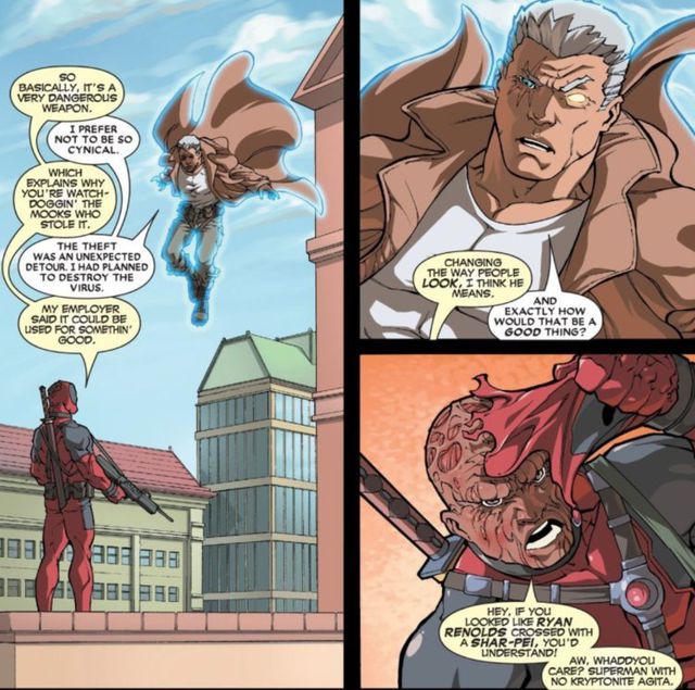 Trong tập 2 của bộ truyện tranh “Cable & Deadpool” ra mắt hồi năm 2004, Deadpool đã từng tự nhận rằng anh ta trông giống Ryan Reynolds lai... cún shar-pei. Bản thân nam diễn viên cũng biết về sự liên hệ này và như một “điềm báo”, về sau, anh đã vào vai Deadpool rất thành công trên màn bạc.
