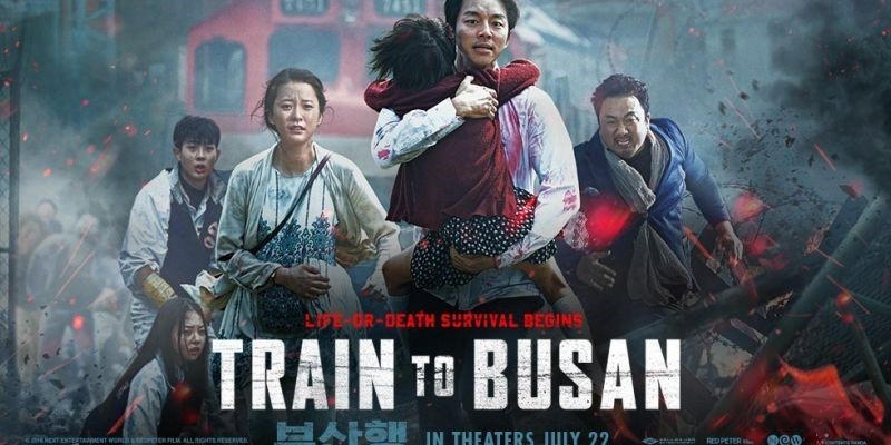 “Train To Busan”- 2016, đạo diễn Yeon Sang-ho, phim từ đầu tới cuối lấy bối cảnh trên một chuyến tàu. Cốt truyện bắt đầu khi Hàn Quốc bị tấn công bởi một loại virus bí ẩn, biến con người thành xác sống khát máu. Có mặt trên cao tốc từ Seoul tới Busan là một người cha cùng con gái, hai vợ chồng chuẩn bị đón đứa con đầu lòng và một số cô cậu học sinh cấp 3. Khi đại dịch bùng phát, hành trình 453 km từ Seoul tới vùng an toàn Busan bỗng thành cuộc chiến để sinh tồn.