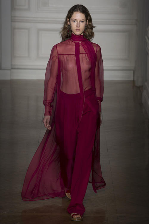 Valentino táo bạo với áo váy sơ mi trong suốt.