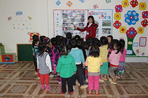 Lớp Lan trực tiếp giảng dạy có 100% trẻ là con em dân tộc thiểu số, ở độ tuổi nhỏ chưa biết tiếng phổ thông nên sự tiếp thu của trẻ còn rất hạn chế. Do đó cô đã khéo léo vận dụng linh hoạt tăng cường tiếng Việt cho trẻ, giúp trẻ có thêm vốn tiếng phổ thông để trẻ tiếp thu một cách tốt nhất những kiến thức mà cô truyền tải trong các tiết dạy, cũng như trong các hoạt động ở trường, lớp mầm non.