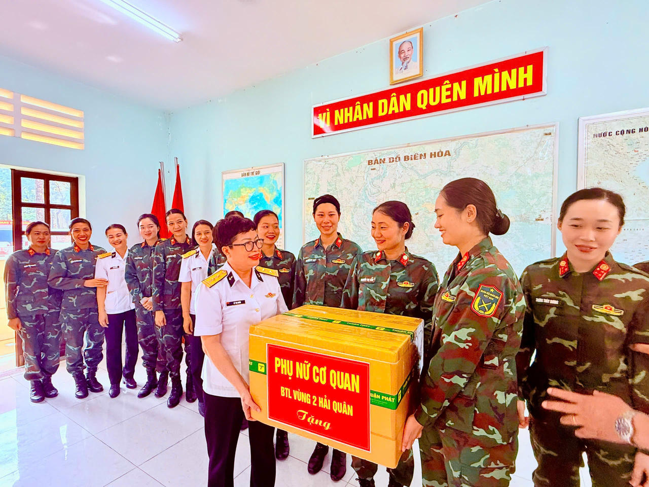 Tại đây, Đại tá Nguyễn Quốc Doanh thay mặt Bộ Tham mưu, Cục Chính trị, Cục Hậu cần - Kỹ thuật Hải quân, cùng đại diện Hội Phụ nữ Vùng 2, đã trao những phần quà động viên tới các nữ quân nhân. Những món quà nhỏ nhưng thấm đượm tình cảm, là lời nhắn nhủ rằng phía sau những ngày nắng cháy thao trường luôn có sự dõi theo, tự hào của hậu phương, của đồng chí, đồng đội.
