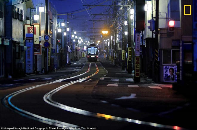 Hideyuki Katagiri đã chụp lại bức ảnh tuyến đường sắt Enoshima ngoài khơi bờ biển Nhật Bản. Tuyến đường sắt là nơi giao thương của quận Kamakura và Fujisawa.