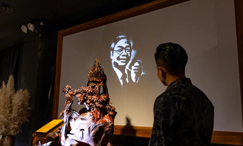 Điều kỳ diệu chưa dừng lại ở đó, với sự tính toán thần kỳ, ánh sáng đi qua tác phẩm "cây tre Việt Nam" lại tạo thành bức chân dung đầy cảm xúc của Tổng Bí thư Nguyễn Phú Trọng.
