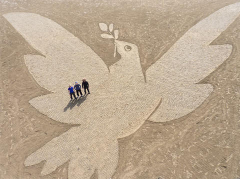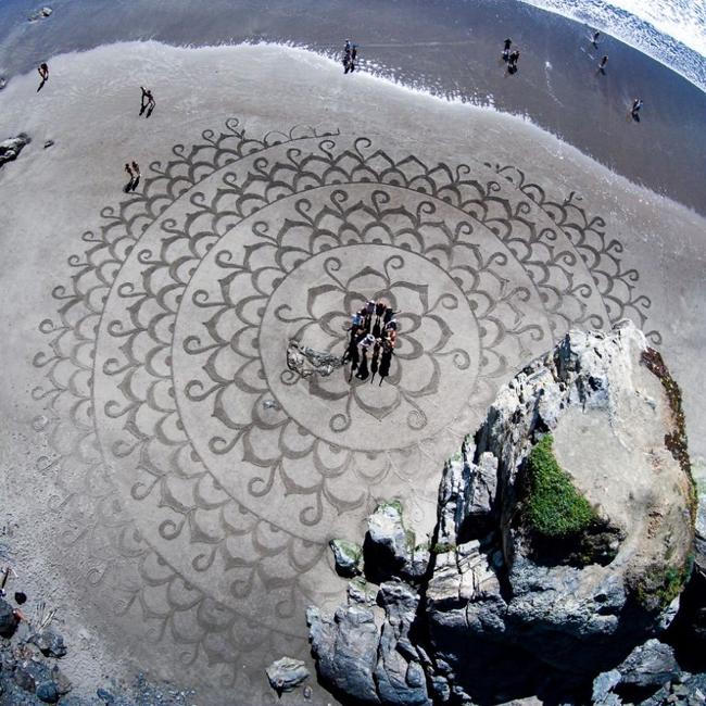 ...vẽ những bức tranh lớn trên cát chỉ có thể xem được trọn vẹn từ trên cao.