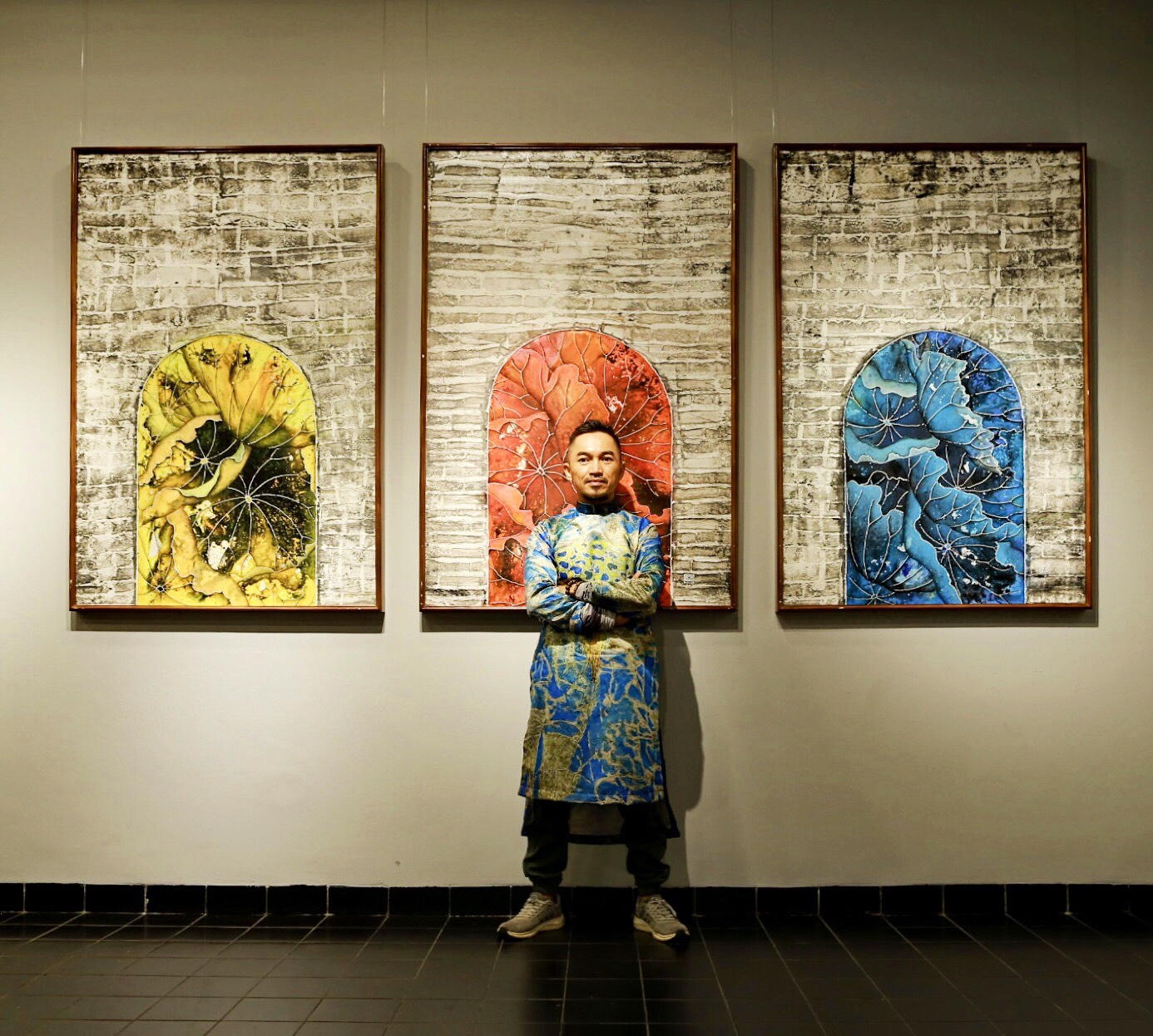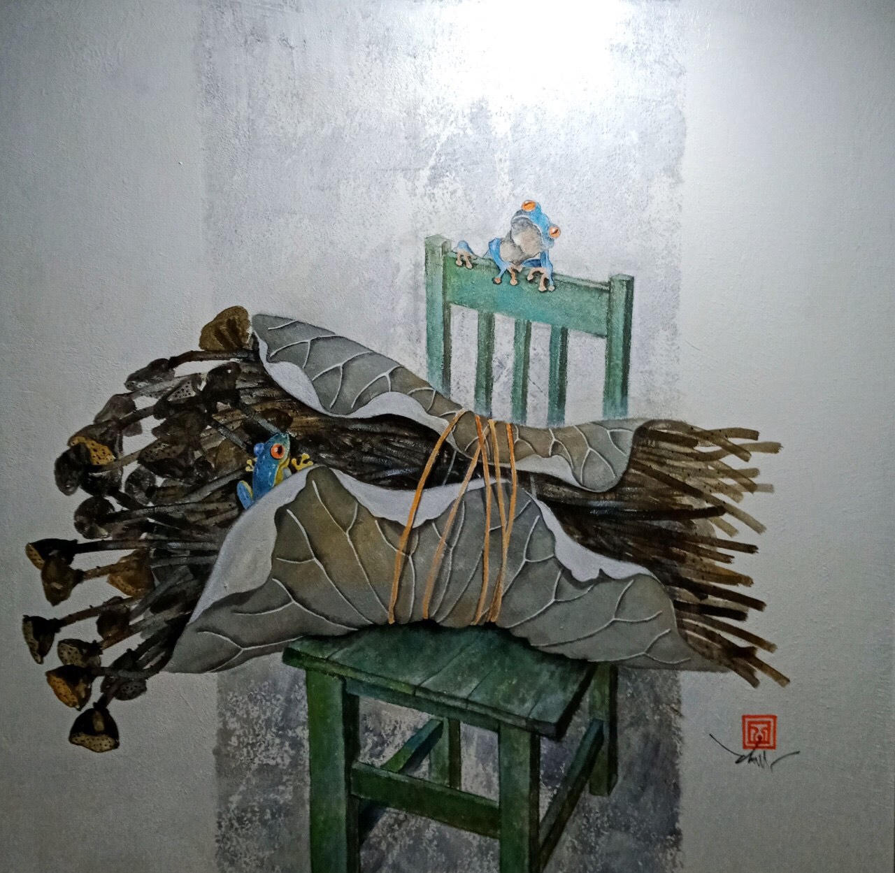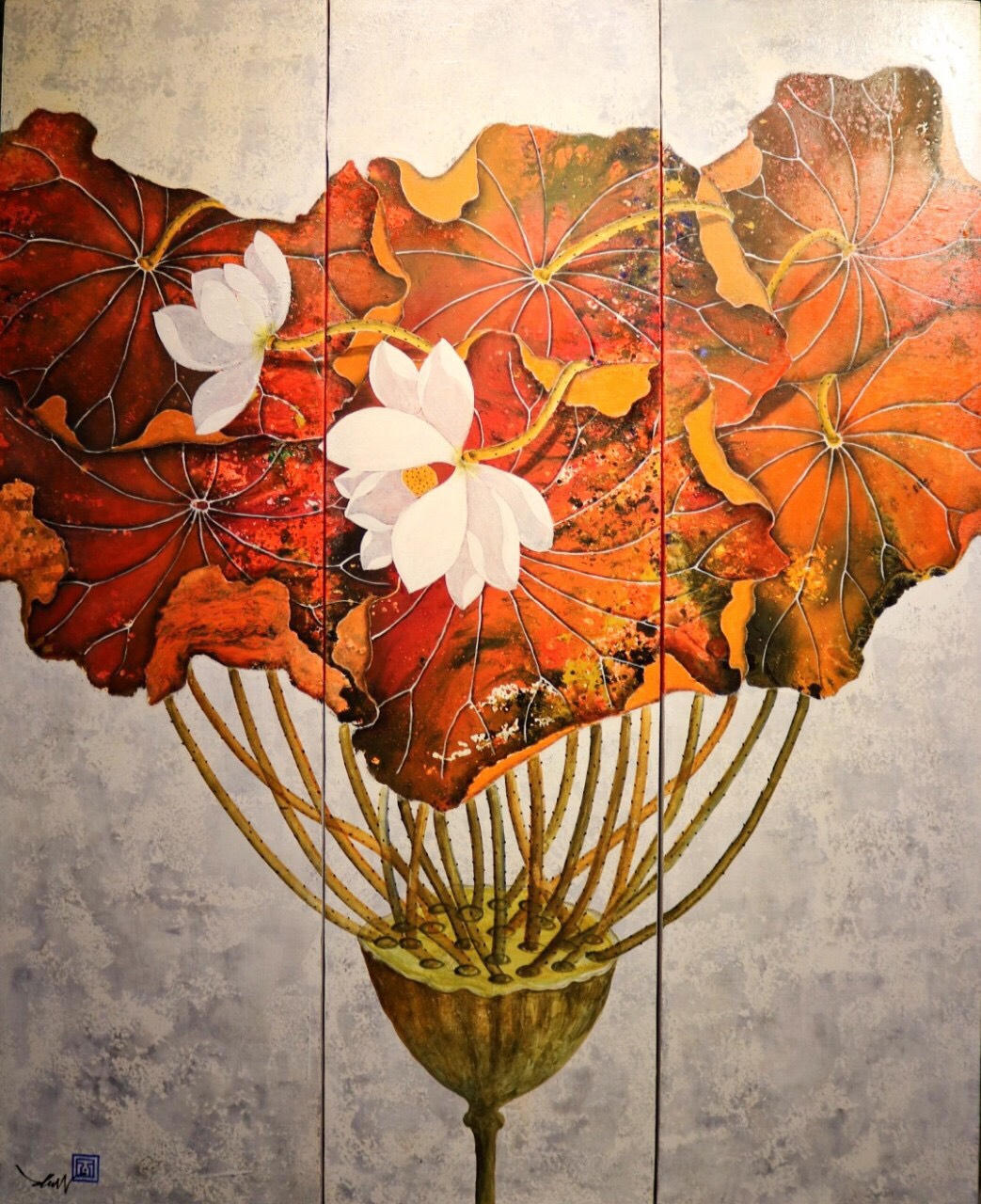 Tranh Sen của Hoạ sĩ Lê Hoà có bố cục chặt chẽ, mang triết lý nhà Phật |