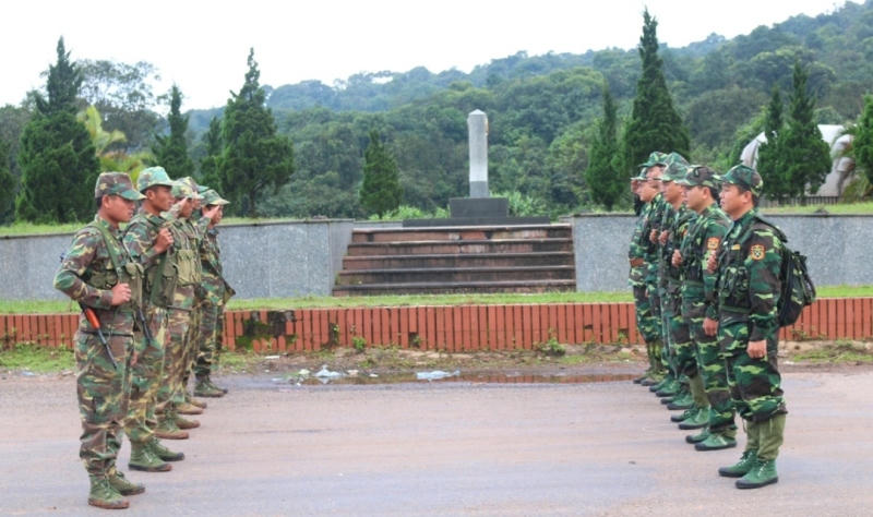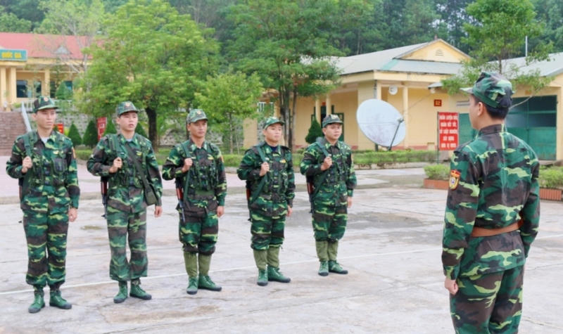 | Cán bộ chiến sĩ Đồn Biên phòng Cửa khẩu quốc tế La Lay Kiểm tra quân tư, trang trước giờ xuất phát lên đường tuần tra cùng lực lượng Biên phòng nước ban Lào. |