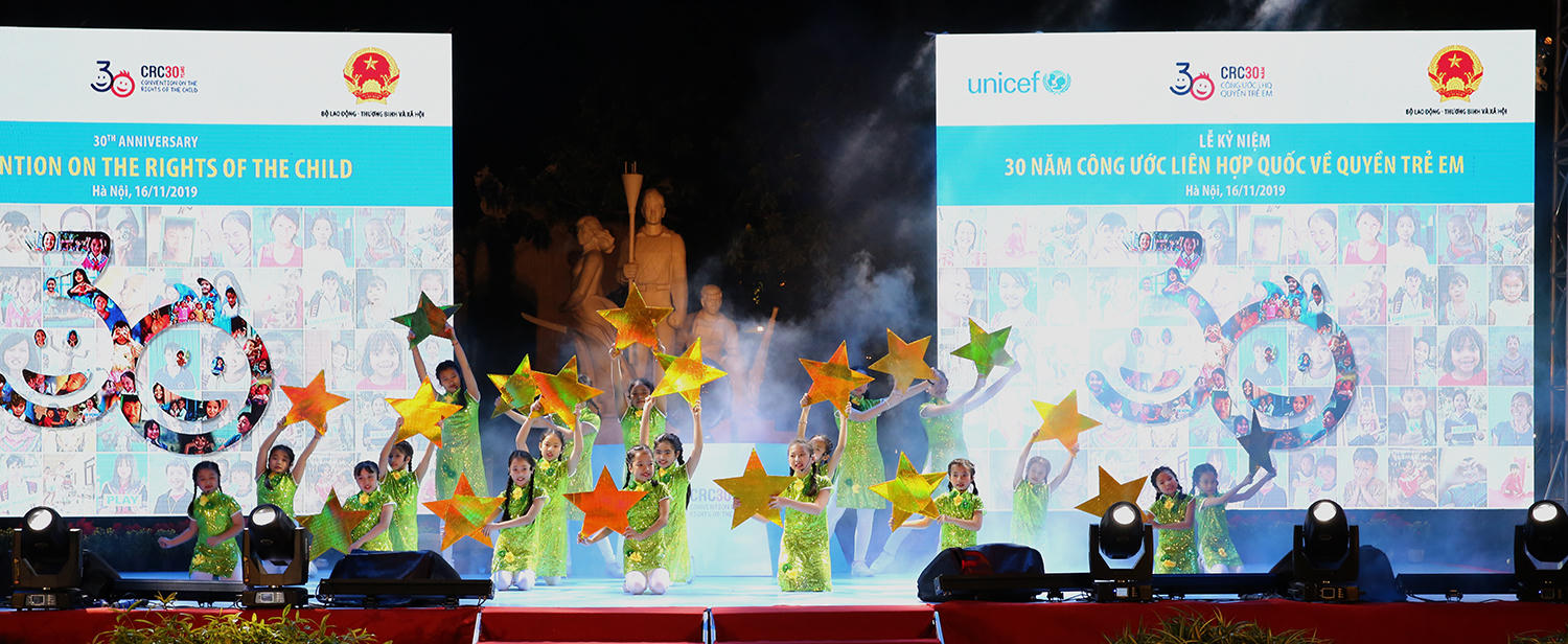 Tại lễ kỷ niệm, Phó Thủ tướng Vũ Đức Đam, lãnh đạo Bộ LĐ-TB&XH, UNICEF đã cùng các em thiếu nhi thực hiện nghi thức “Thắp sáng màu xanh vì quyền trẻ em”, và chứng kiến Tháp Bút và cầu Thê Húc (Hà Nội), tòa tháp Landmark 81 (TPHCM) được thắp sáng màu xanh, thể hiện những hy vọng và cơ hội cho mọi trẻ em.