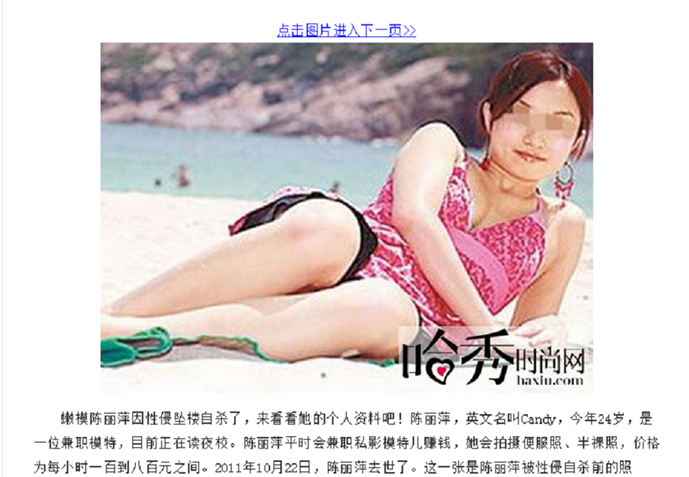 Không chỉ các diễn viên mà ngay trong môi trường làm việc của giới người mẫu cùng ẩn chứa rất nhiều cạm bẫy. Năm 2011, trong buổi chụp hình trang phục áo tắm tại một khách sạn, người mẫu trẻ Hồng Kông Trần Lệ Bình đã bị nhiếp ảnh gia Aaron cưỡng bức nhiều lần khiến tâm trạng cô vô cùng hoảng loạn. Xong việc Aaron còn đe dọa nếu Lệ Bình tiết lộ chuyện này hắn sẽ công khai ảnh khỏa thân của cô lên mạng.