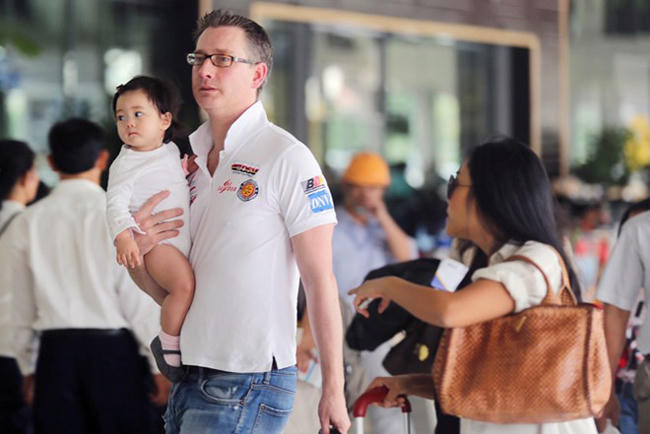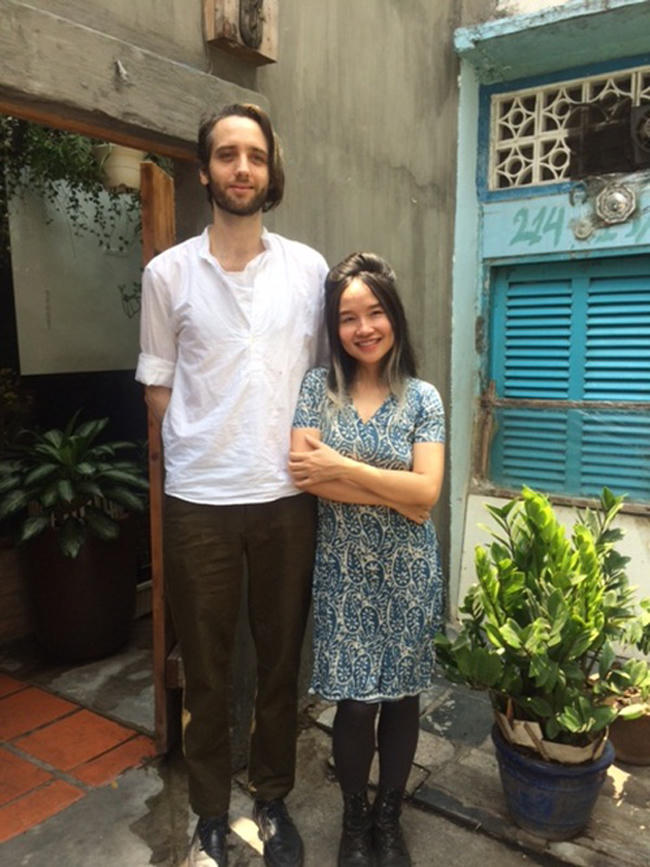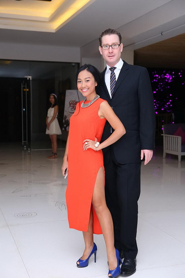Nữ ca sĩ Mai Khôi cùng ông xã Benjamin Swanton chênh lệch chiều cao không kém gì vợ chồng Đoan Trang.