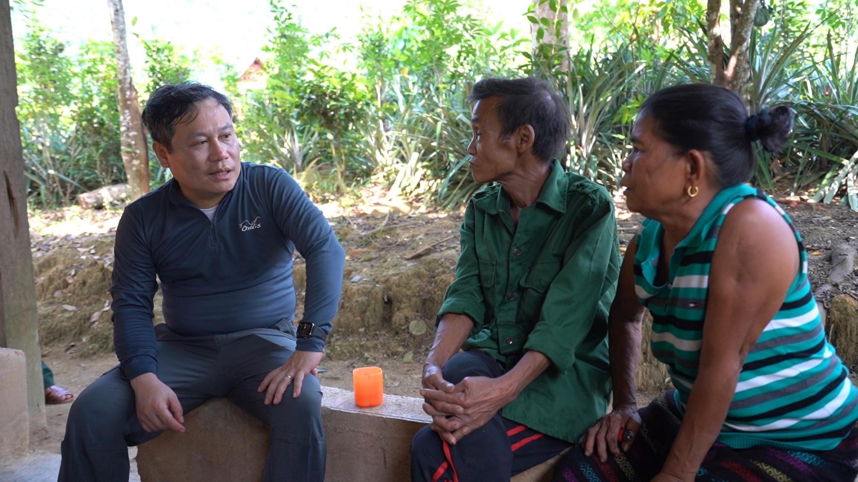 Bí thư Tỉnh ủy Quảng Bình Vũ Đại Thắng trò chuyện với bà con bản Đoòng. |