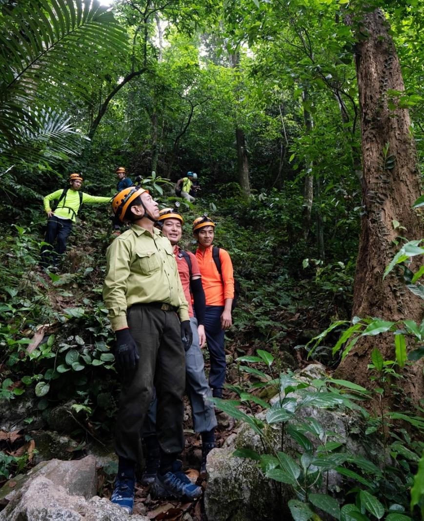 Ông Phạm Hồng Thái – Giám đốc Ban quản lý VQG Phong Nha – Kẻ Bàng (người đứng đầu) kiểm tra rừng Di sản. |