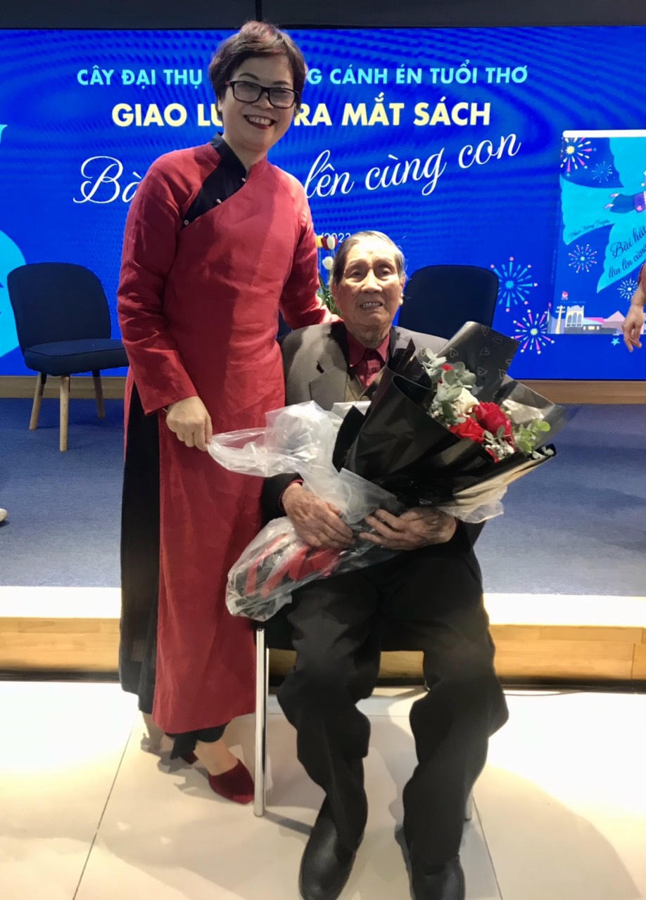 Tại buổi giao lưu và ra mắt sách “Bài hát lớn lên cùng con”, nhạc sĩ chăm chú nghe những ca khúc nổi tiếng của mình như “Chúng em là học sinh lớp 1”, “Ai cũng thích Kamishibai”, “Vì sao lại thế?”... được các giọng ca nhí thể hiện, nhất là cậu bé Nam Phong hát ca khúc “Tiễn thầy giáo đi bộ đội” rất truyền cảm.