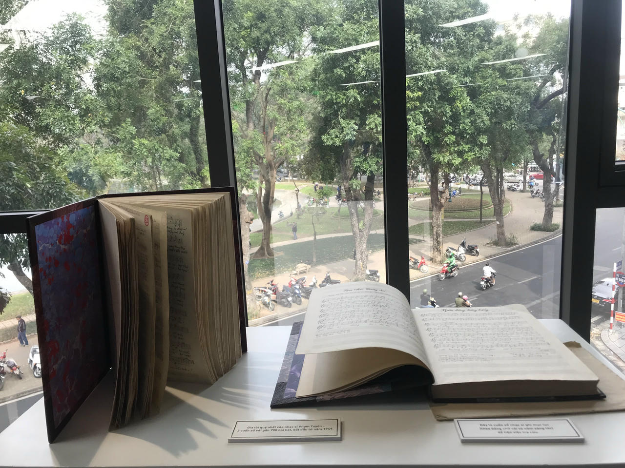 Đó là 2 cuốn sổ chép tay gần 700 bài hát từ năm 1949, cuốn sổ ghi mục lục các bài hát, những tập ca khúc Phạm Tuyên, chiếc khăn quàng gắn với bài hát cánh én tuổi thơ (3/1998), chiếc mũ và kính từng gắn bó nhiều năm với nhạc sĩ...