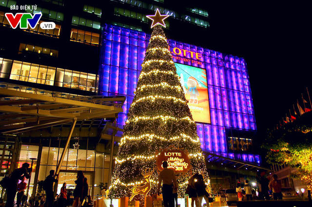 Cây thông Noel khổng lồ được đặt trước tòa nhà Lotte Đào Tấn