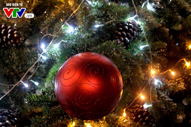 Cây thông được trang trí cầu kì, lấp lánh, tạo điểm nhấm cho du khách tới tham quan nhà thờ dịp Giáng sinh
