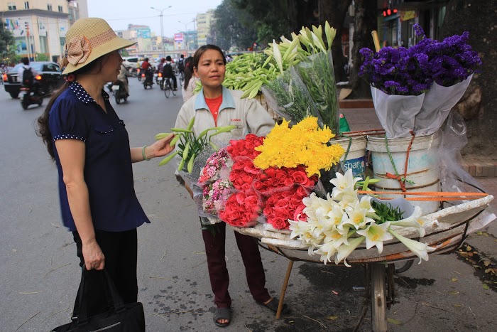 Những người phụ nữ vùng hoa lam lũ, rong ruổi bán hoa dạo trên các con phố.