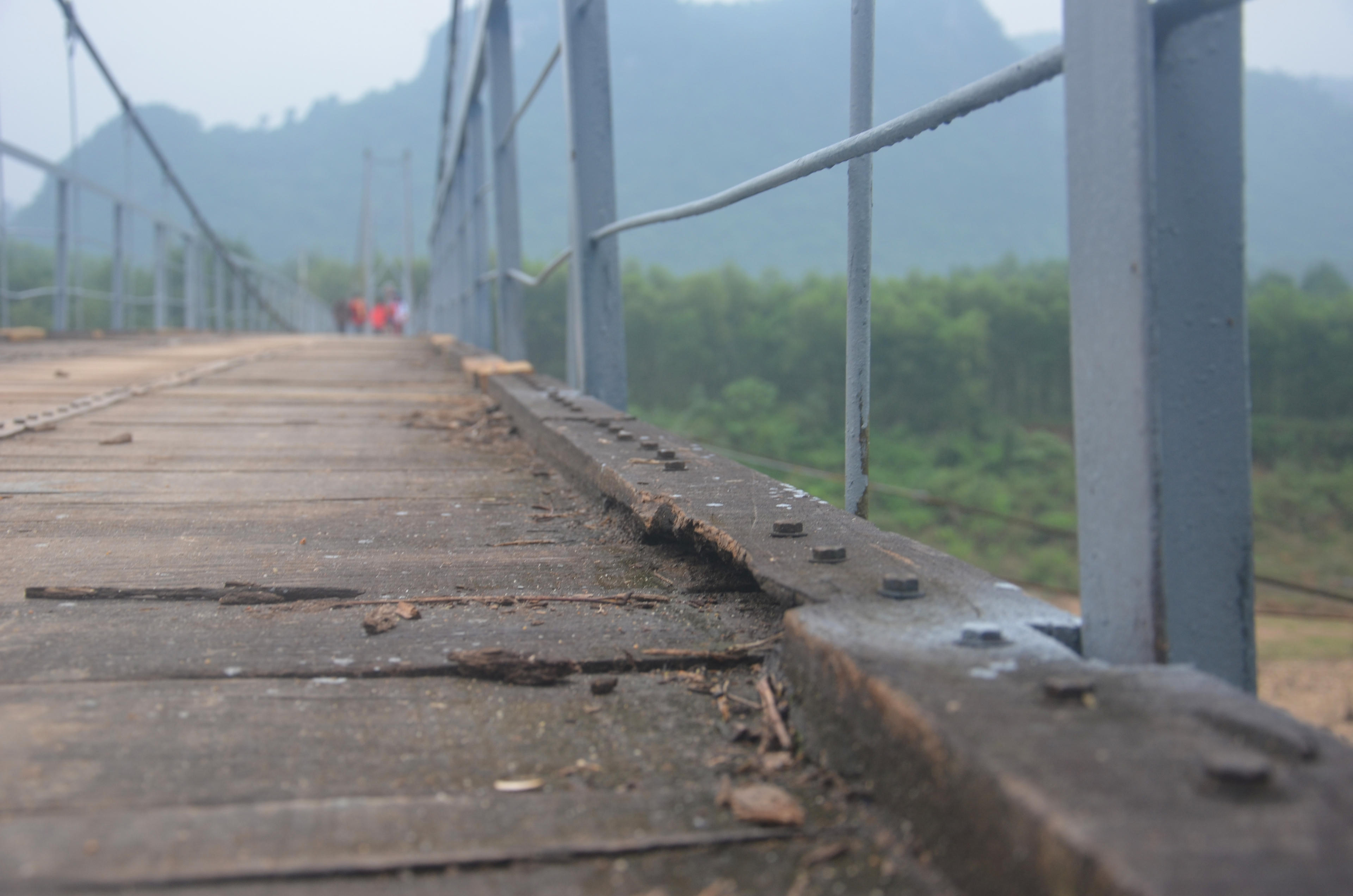 Cũng tại huyện Tuyên Hóa, cây cầu treo Đồng Tân tại Thị trấn Đồng Lê sau hơn 20 năm sử dụng, đã xuống cấp cũng phải “gồng mình” kéo dài tuổi thọ, chịu hàng nghìn lượt qua lại mỗi ngày. Nhiều hạng mục của công trình như cáp treo, ván mặt cầu, thanh treo, giằng gió đã xuống cấp và gỉ sét tiềm ẩn nguy hiểm.